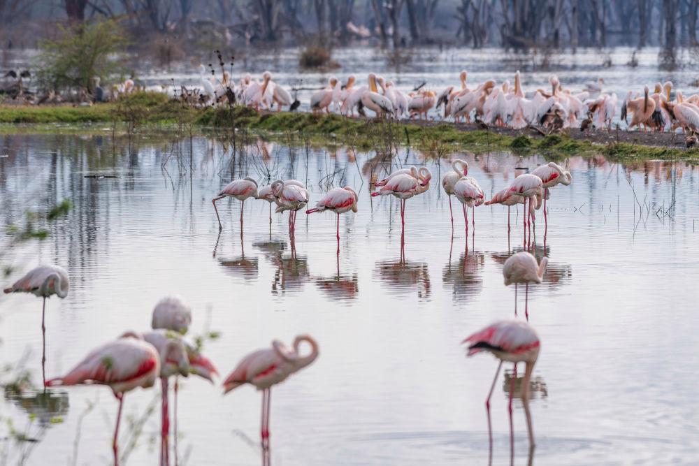↑群鸟在肯尼亚纳库鲁湖国家公园内栖息(3月2日摄)。