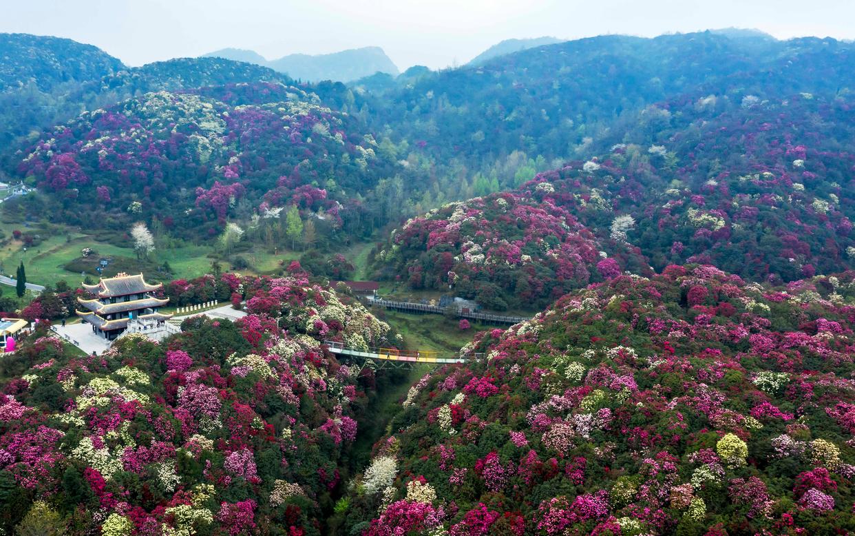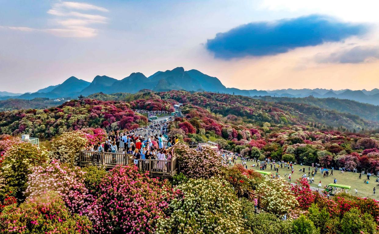 百里杜鹃景区地处乌蒙山腹地,是国家5A级旅游景区,拥有125.8平方公里的原始杜鹃林带。景区内原始杜鹃林面积大、种类多、保存完好,有“地球彩带”之誉,吸引众多游客前来游玩。2026年百里杜鹃赏花期于3月上旬开始。