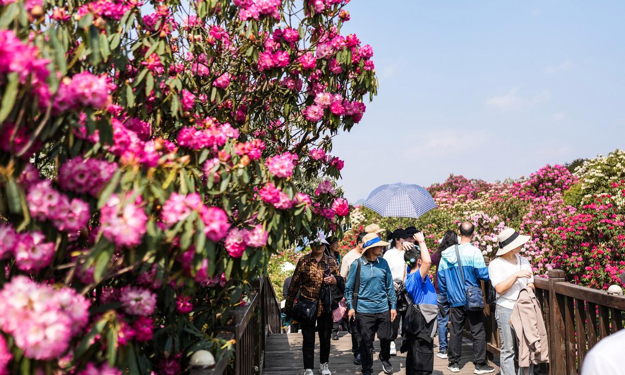 游客在百里杜鹃普底景区观光游玩