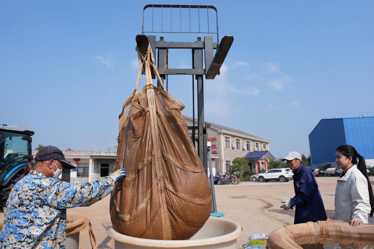 3月12日,在岳阳市岳阳县筻口镇丰瑞农机专业合作社,工人在搬运清洗后的早稻稻种。新华社记者 陈振海 摄