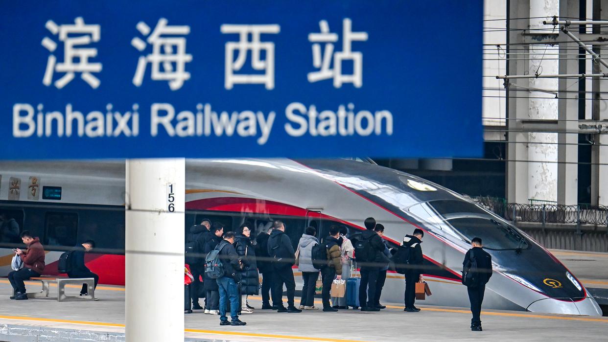 3月13日,旅客在天津滨海西站乘车出行。新华社发(杜鹏辉 摄)