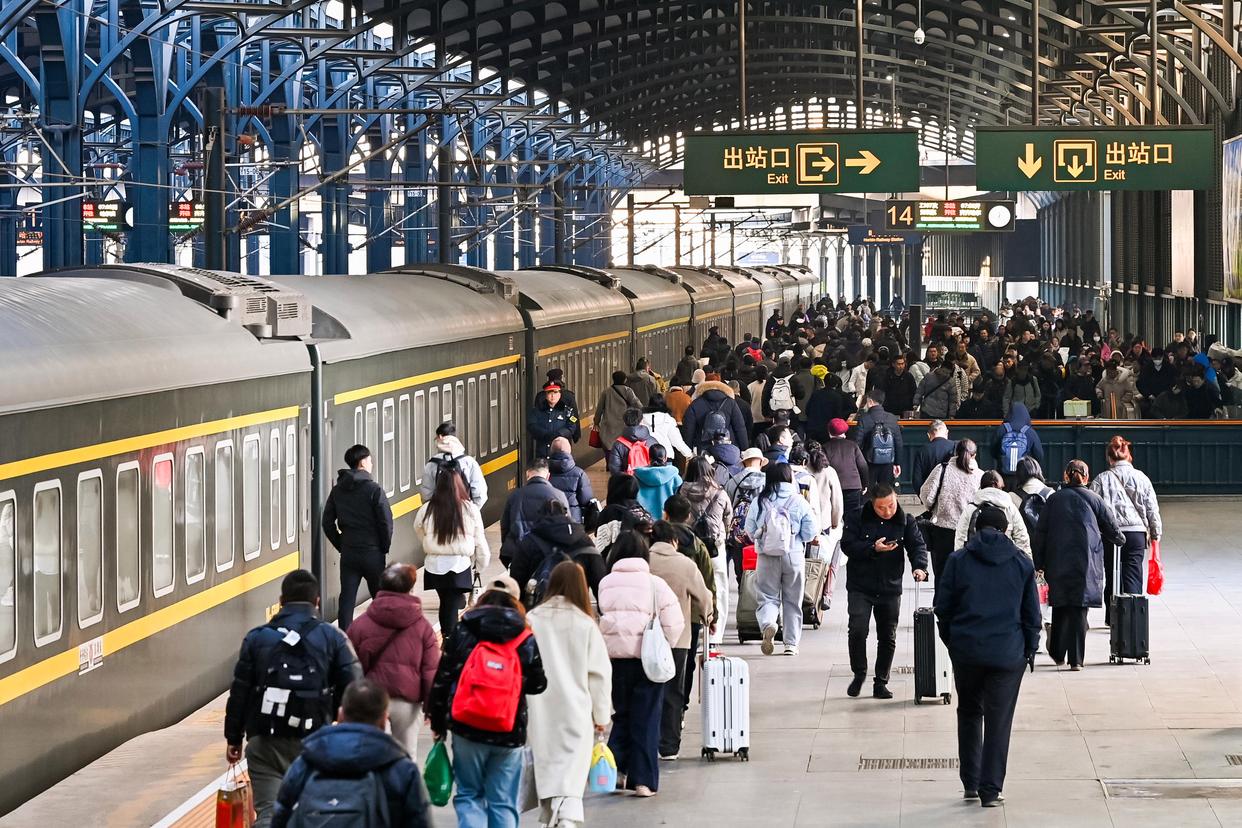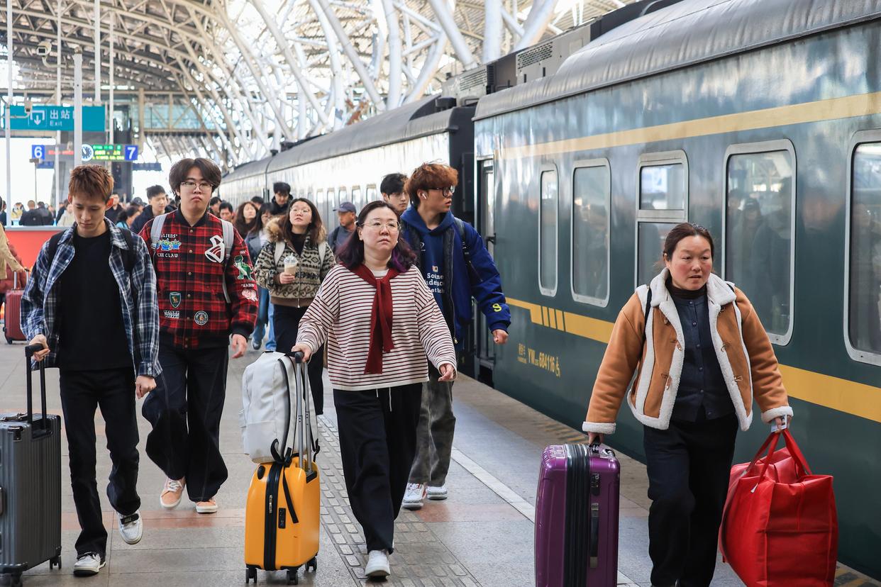 3月13日,旅客从江苏南京火车站下车后准备出站。新华社发(杨素平 摄)