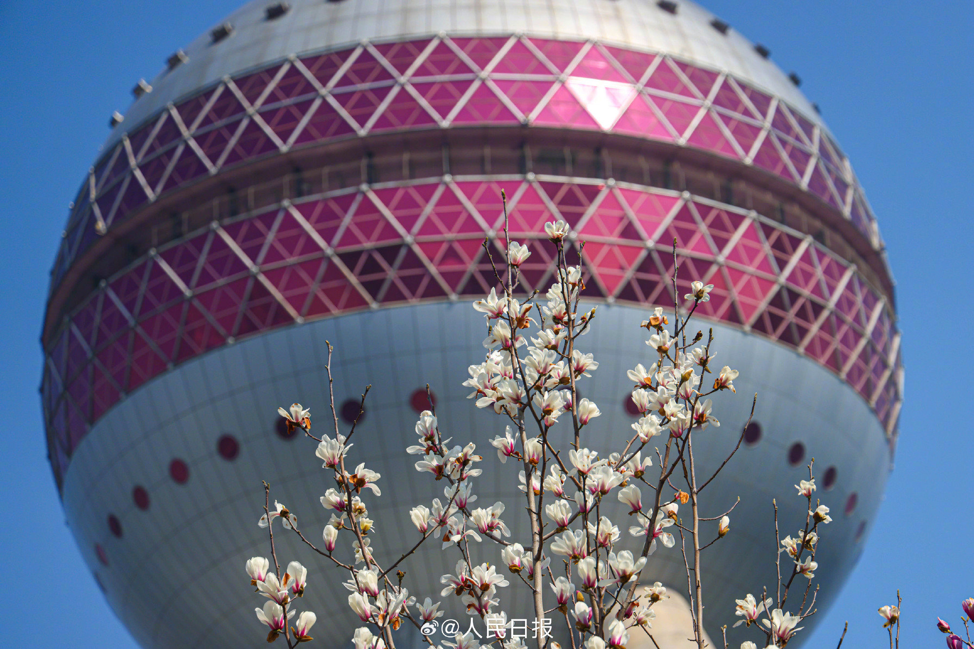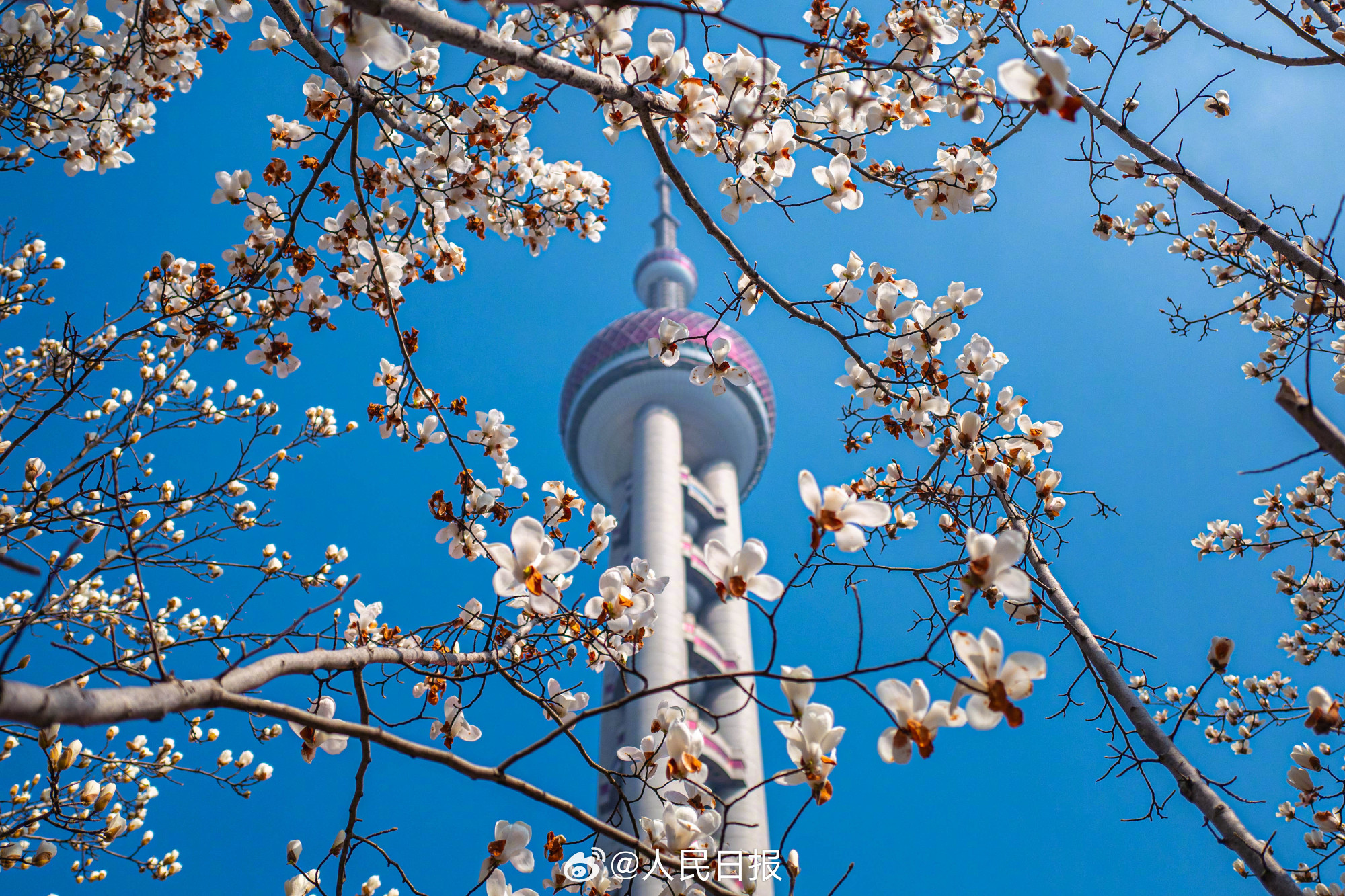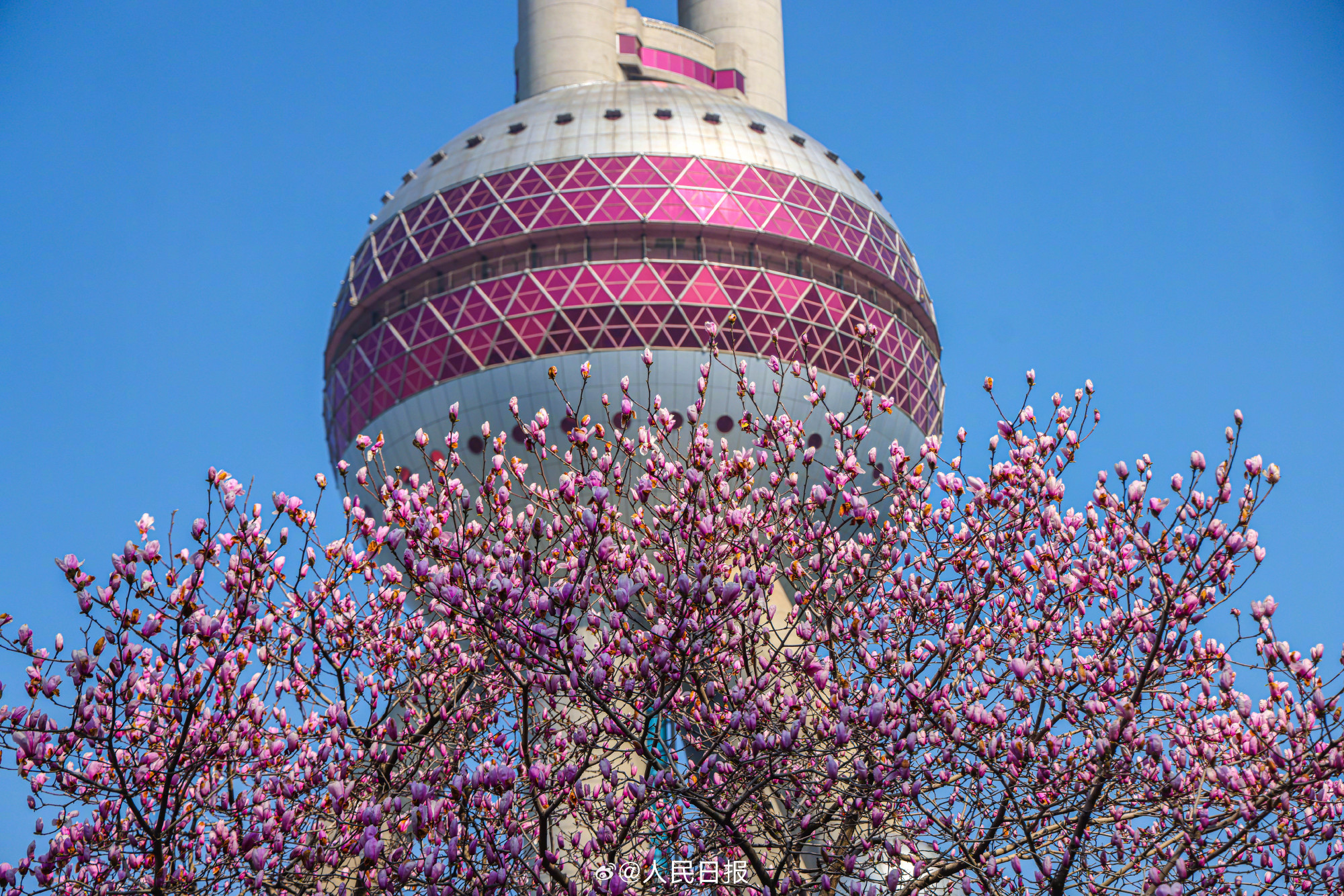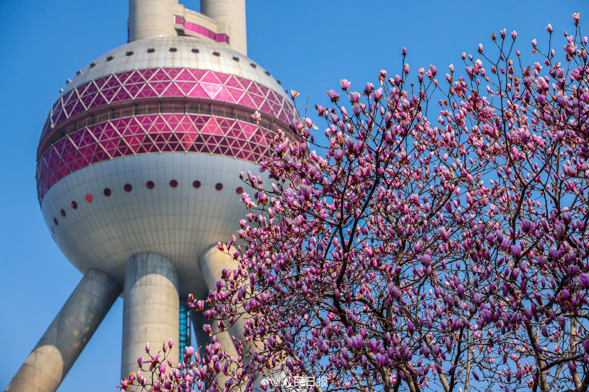 春日限定美景!玉兰与东方明珠塔同框
