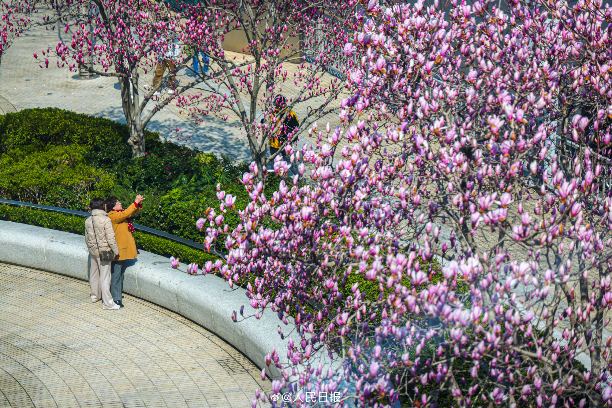 近日,上海陆家嘴环岛玉兰花开正好,吸引人们前来赏花,随手一拍都是春日限定美景。