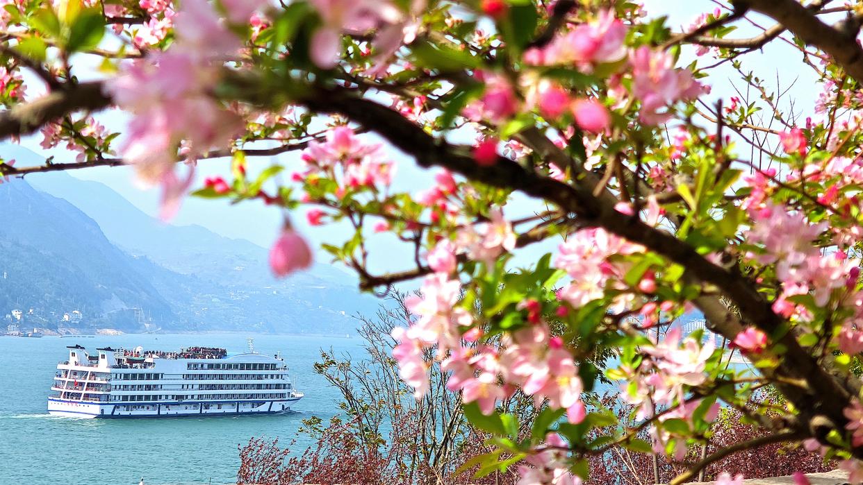 3月13日,重庆市巫山县境内长江三峡巫峡两岸桃花、海棠花盛开。 新华社发(王忠虎 摄)