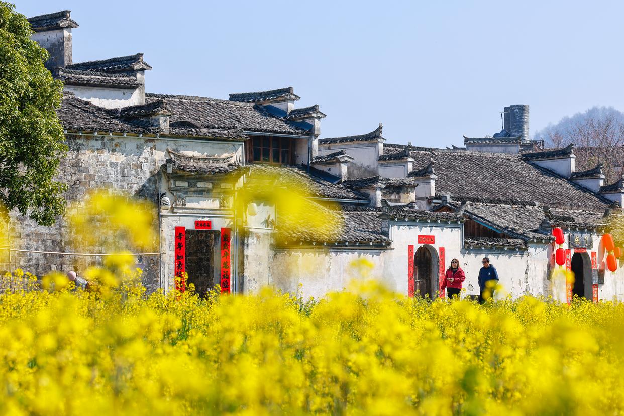 3月13日,安徽省黄山市黟县西递古村油菜花盛开。新华社发(施亚磊 摄)