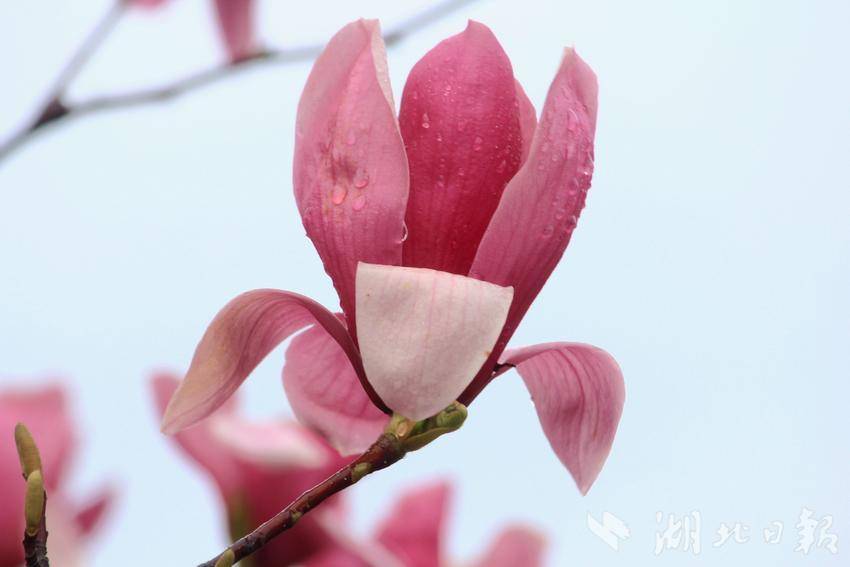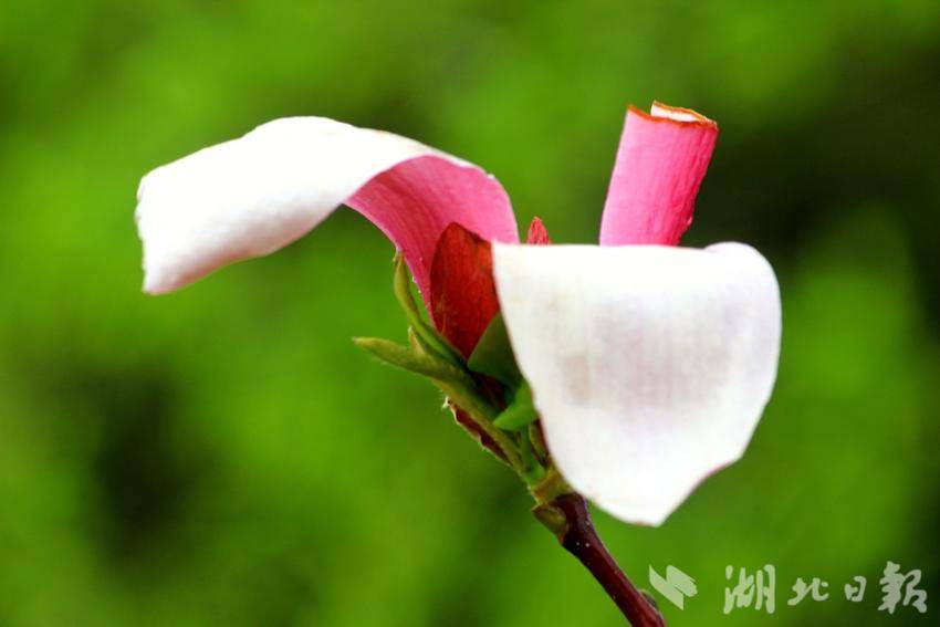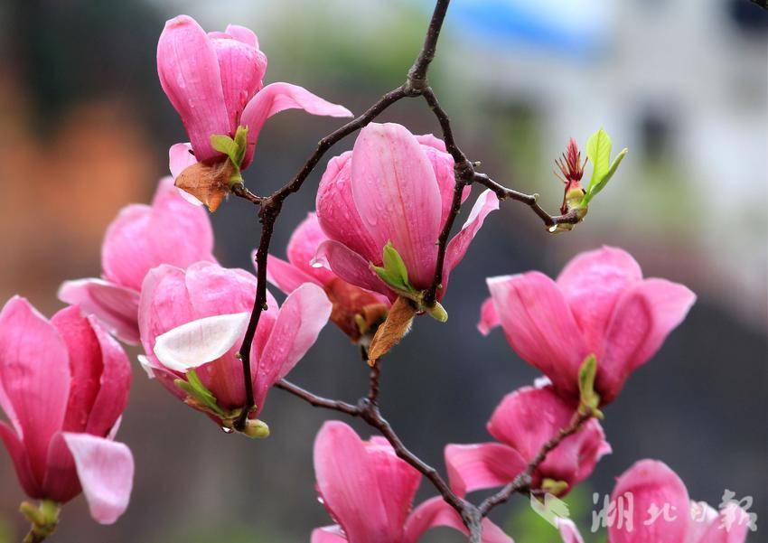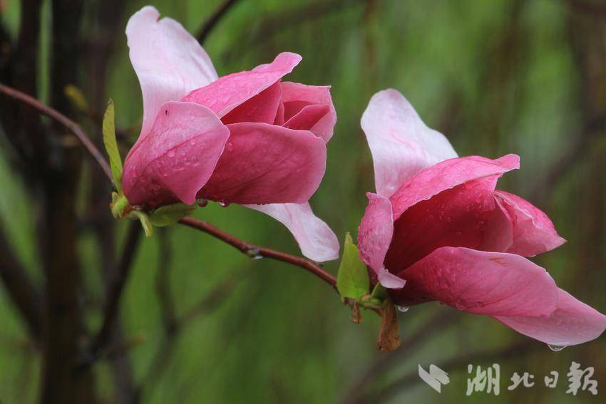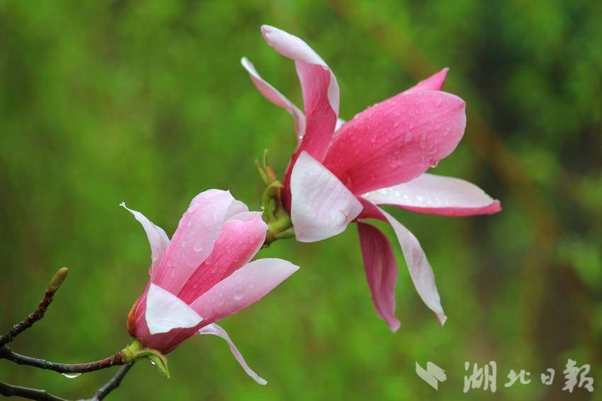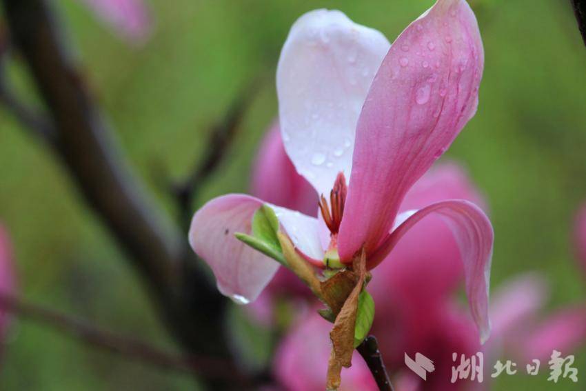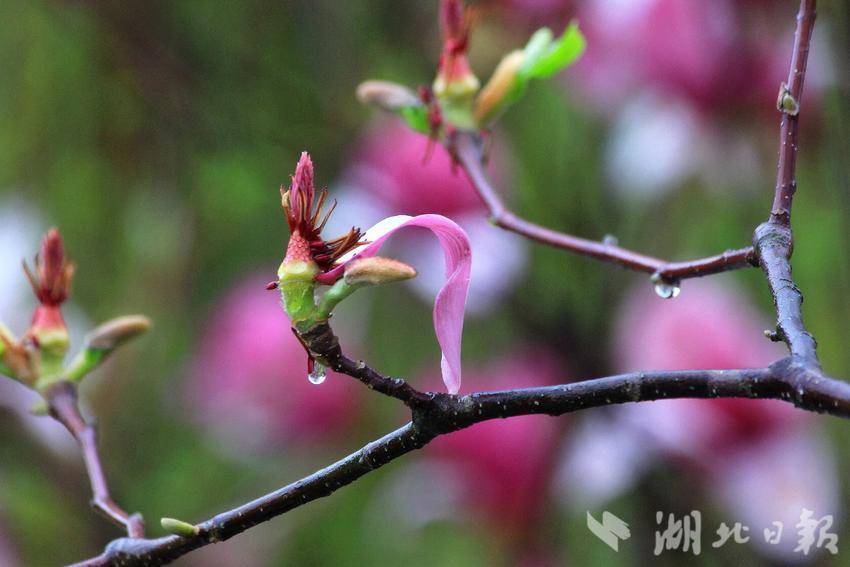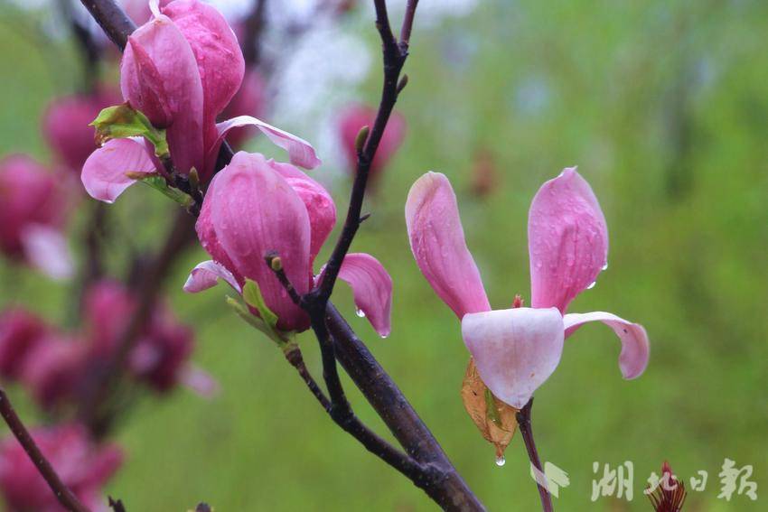 “好雨知时节,当春乃发生。随风潜入夜,润物细无声。”初春三月,春风拂柳,细雨如丝,万物复苏。恩施金山大桥下的玉兰花在春雨滋润中悄然盛开。滴滴雨珠洒在枝干上,凝结在花瓣上,晶莹剔透,朵朵娇艳,十分可爱。