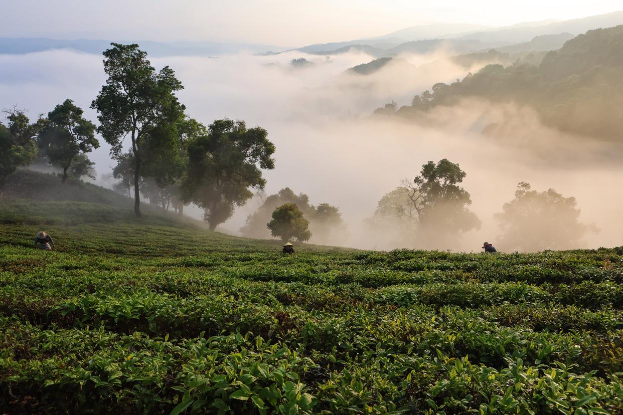 3月15日,云南省西双版纳州勐海县勐混镇曼蚌村茶农在采摘春茶。新华社发(李云生摄)