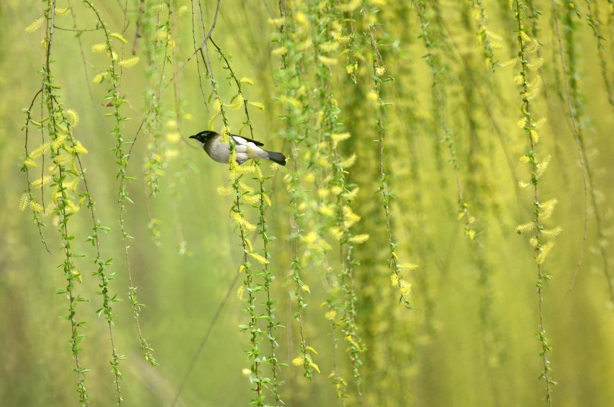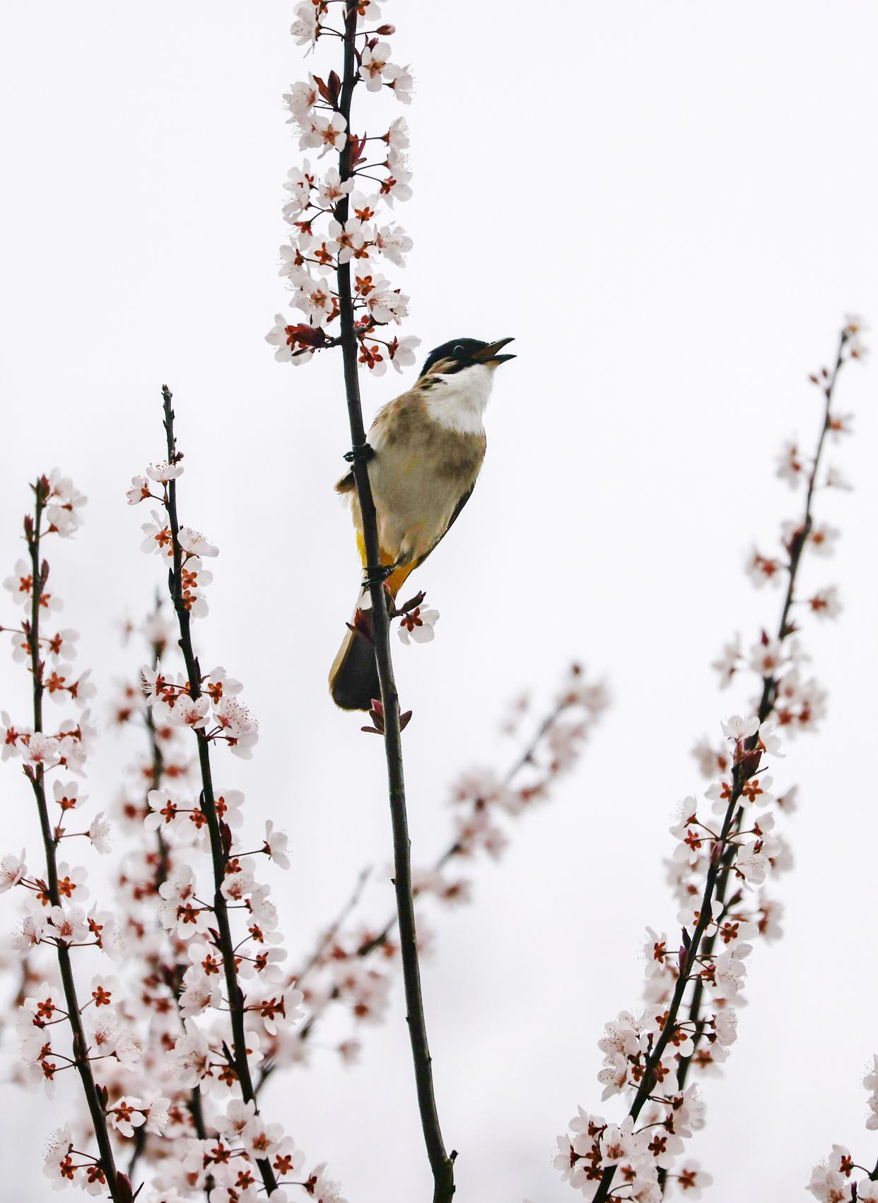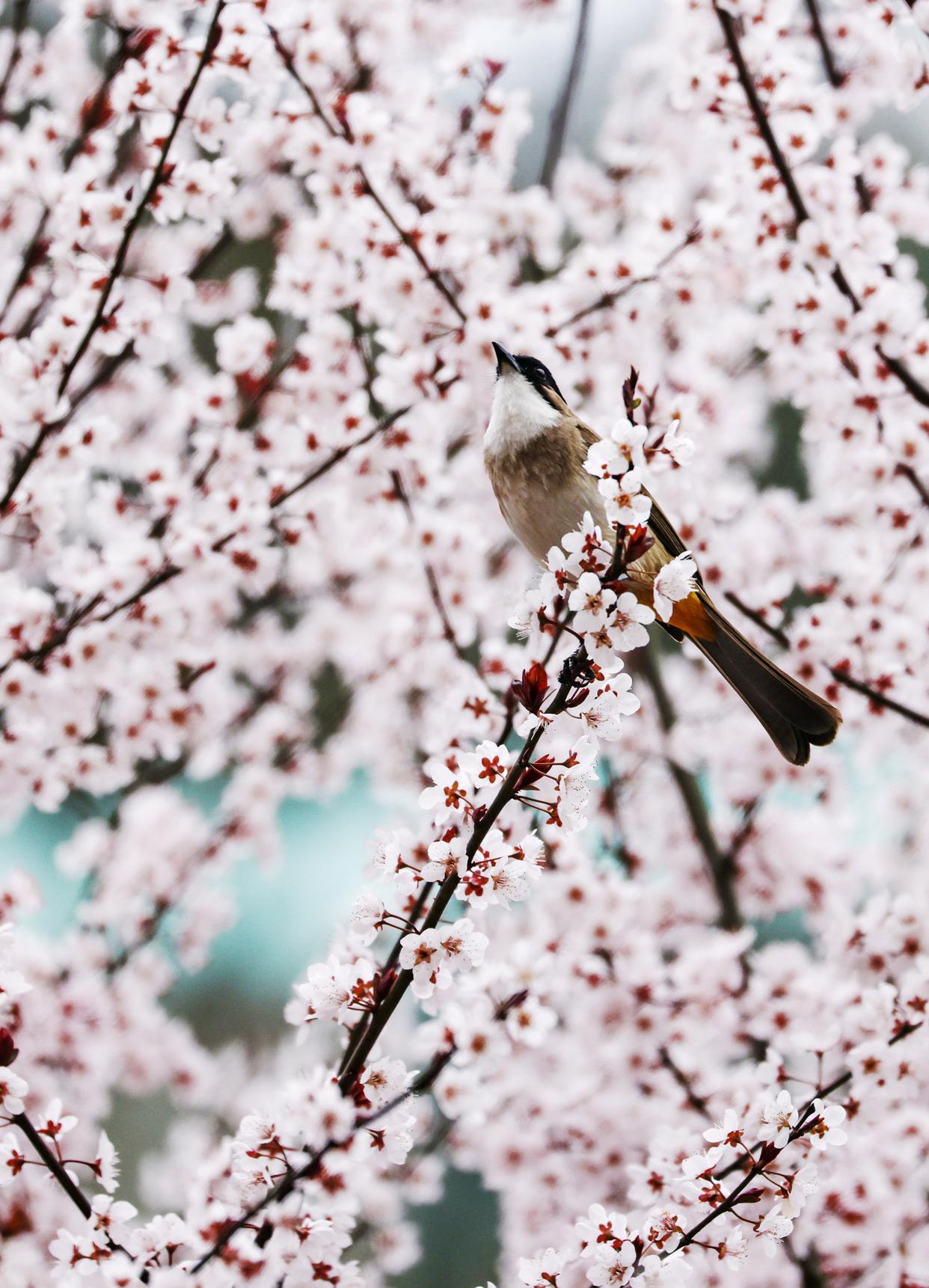 ↑2026年3月8日在浙江省台州市黄岩区澄江街道拍摄的小鸟。CICPHOTO/袁杨军 摄