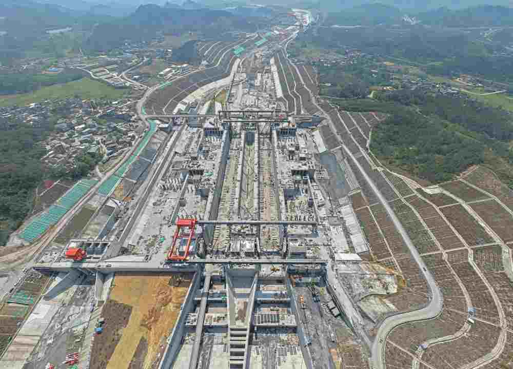 这是2026年3月5日拍摄的广西平陆运河马道枢纽建设现场(无人机照片)。新华社记者 周华 摄