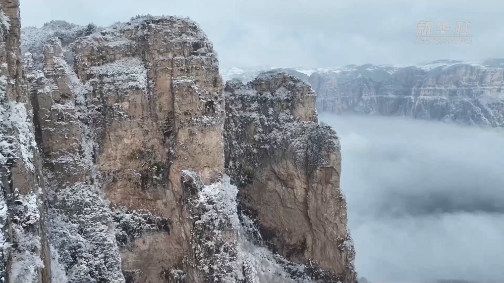 近日,一场降雪过后,山西平顺境内的太行山间出现云海景观。云雾在连绵峰峦之中奔涌,古建静立其间时隐时现,勾勒出一幅幅水墨画卷。