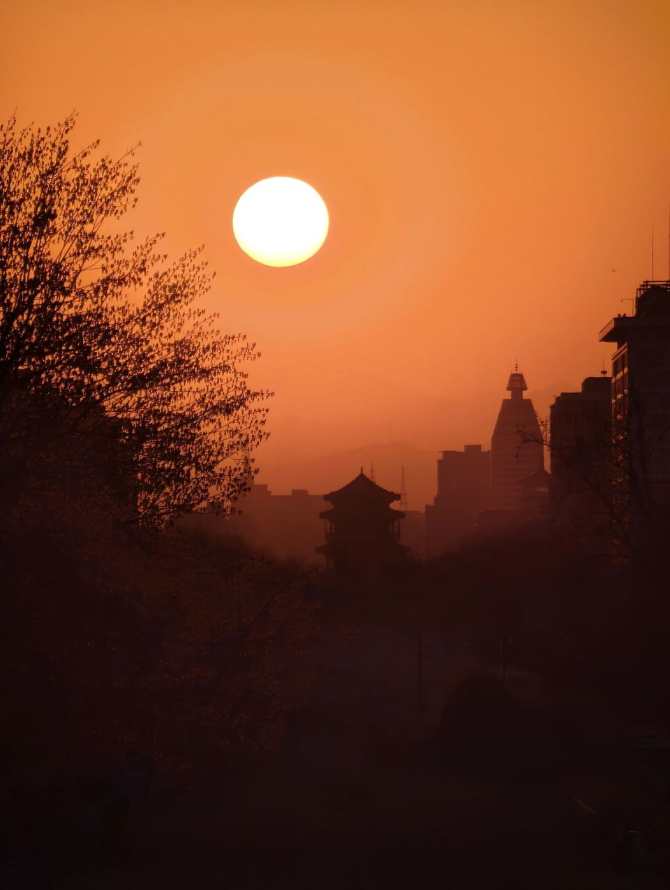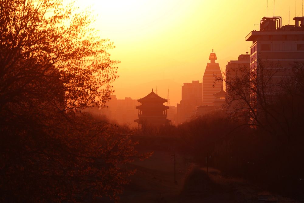 这是3月18日在北京明城墙遗址公园拍摄的夕阳风景。新华社记者 邢广利 摄