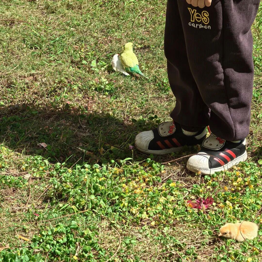 春天来了,小区里的小孩出门遛小鸡、小鸟。@诗也无涯