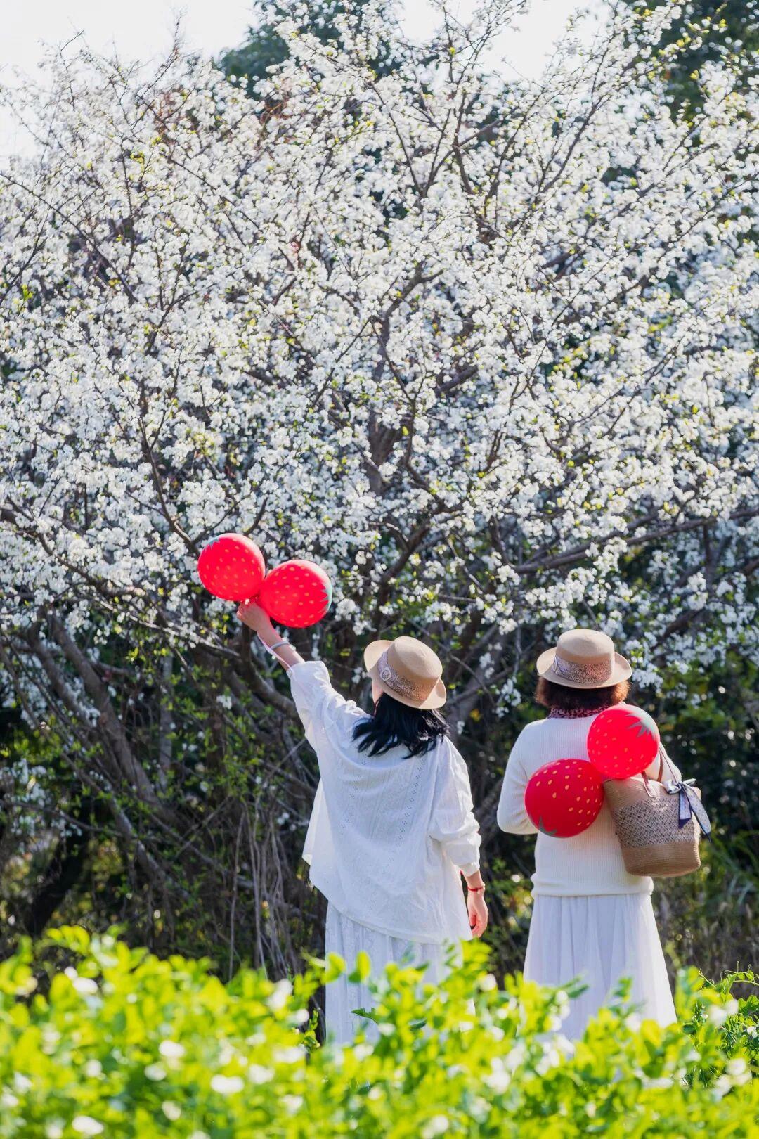 正是春暖花开的季节,气球成双,随风摇摆,来赏花吧!@车来潮往