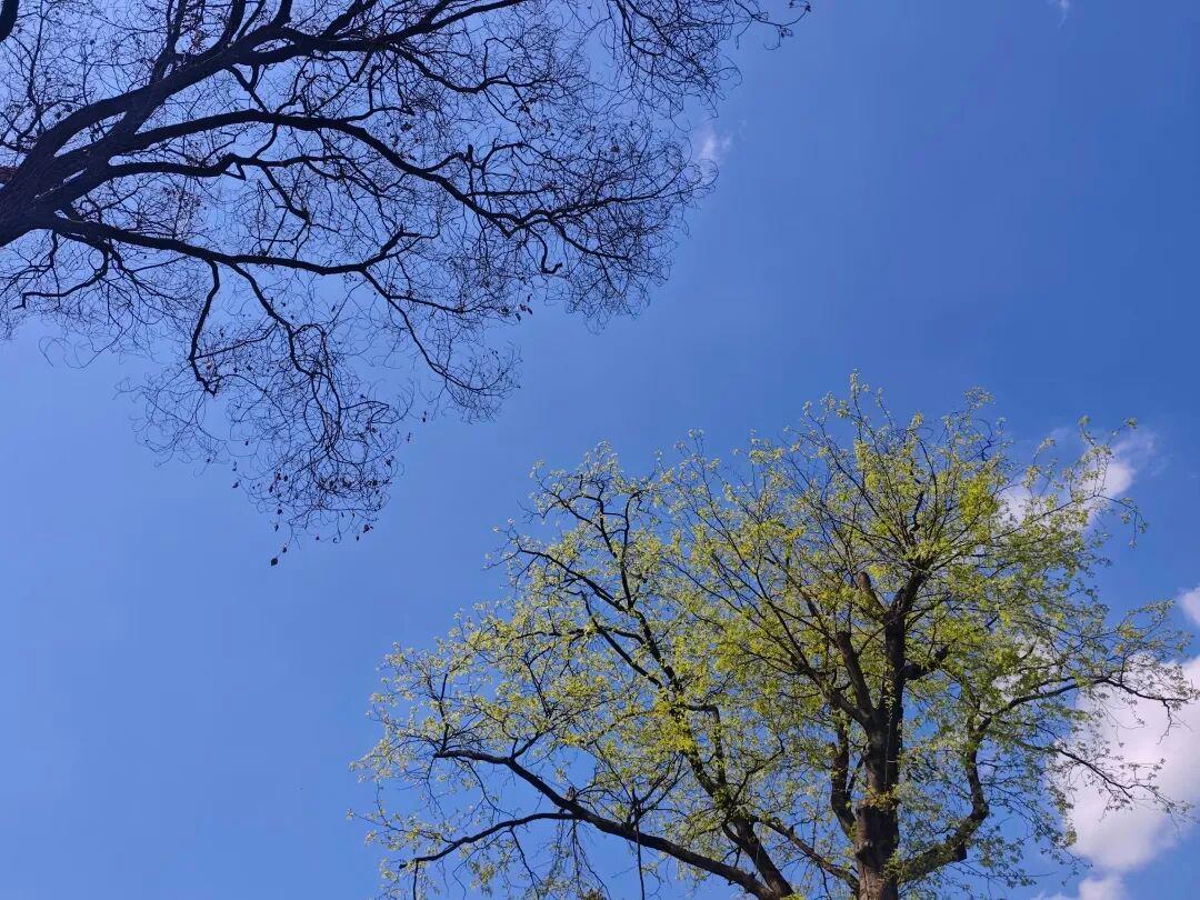 没有鲜花,只有刚刚发芽的绿叶与还没有发芽的树枝,你认为春天来了吗?@青崖白鹿