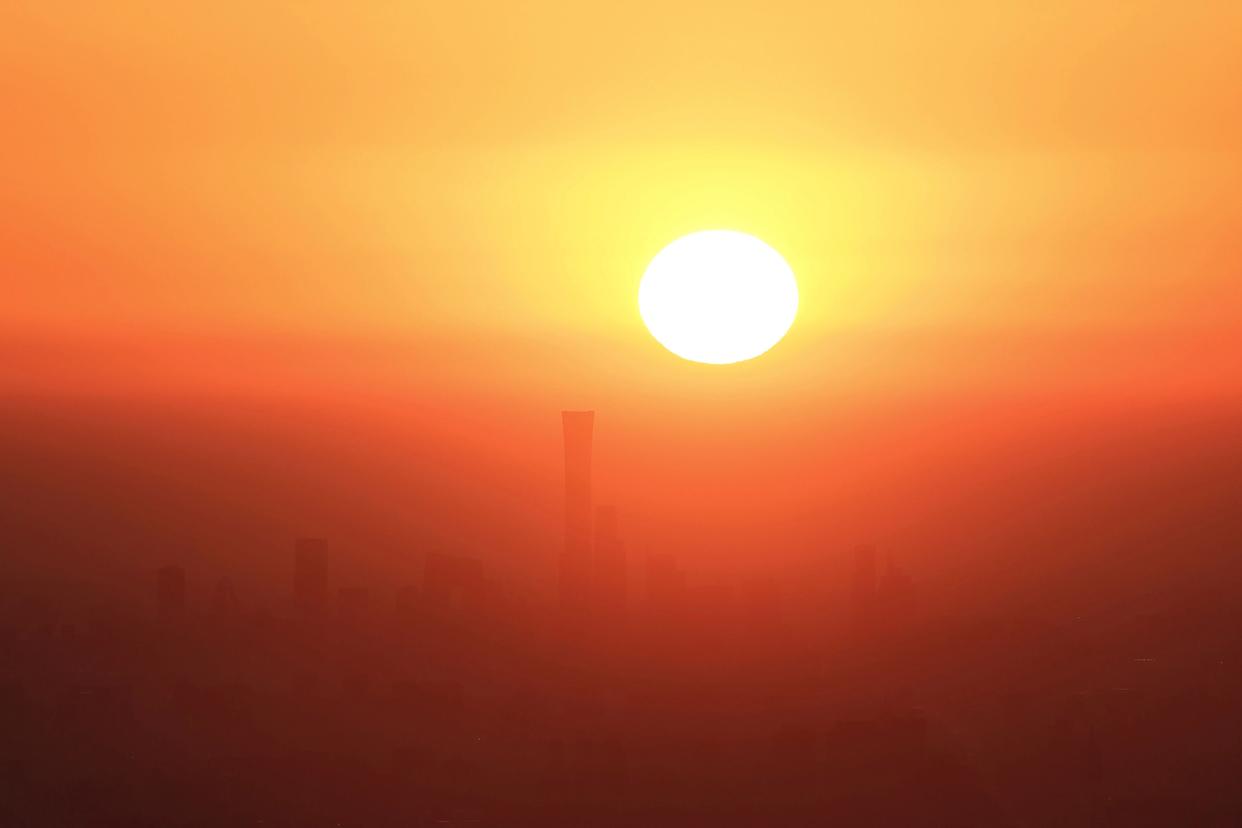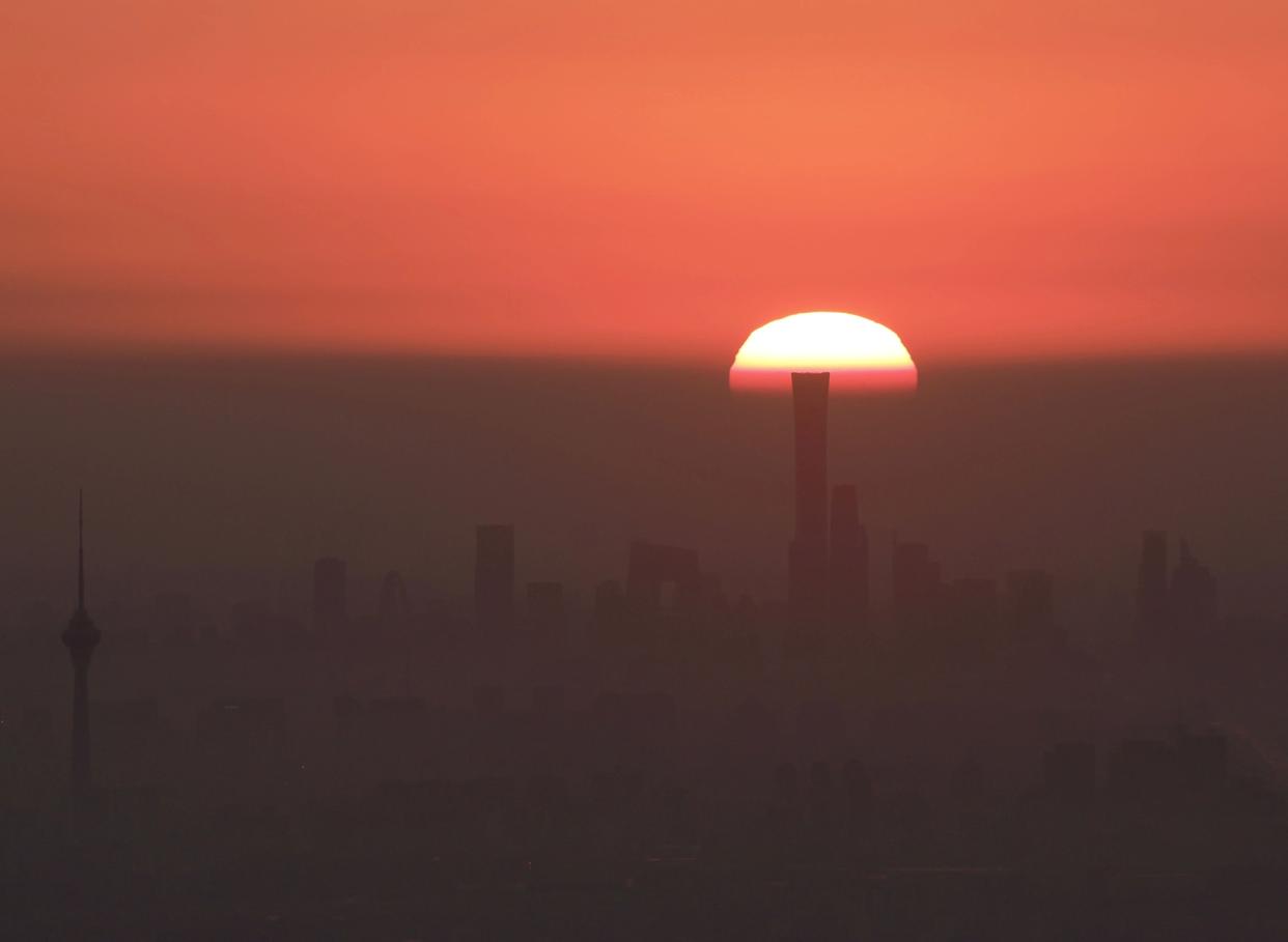 3月20日在北京定都阁附近拍摄的日出。新华社发(钟奕摄)