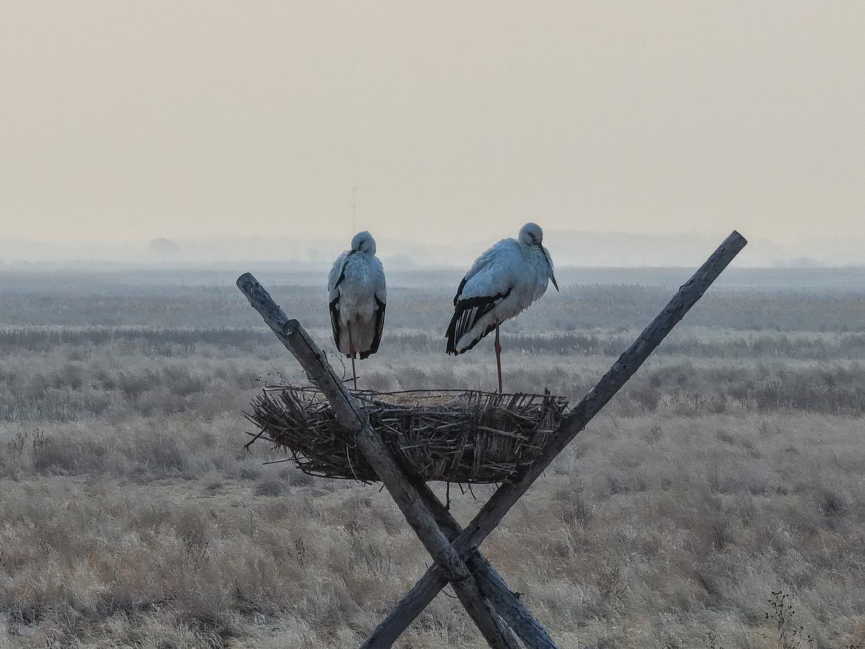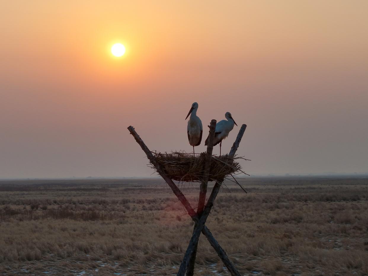 这是3月21日在黑龙江三环泡国家级自然保护区拍摄的东方白鹳(无人机照片)。新华社发(曲玉宝 摄)