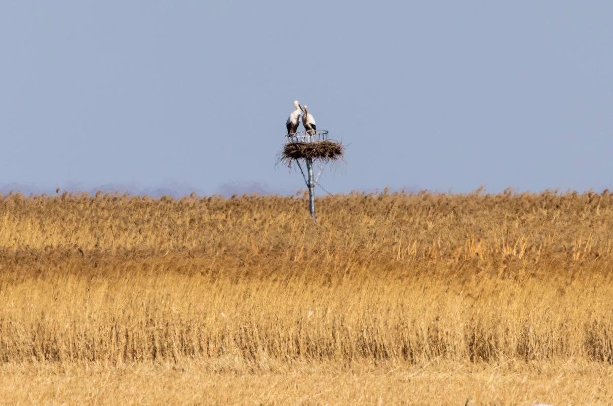 近日,东方白鹳陆续飞抵黑龙江各处湿地和水域,赶赴春天的约会,为乍暖还寒的北国注入勃勃生机。
