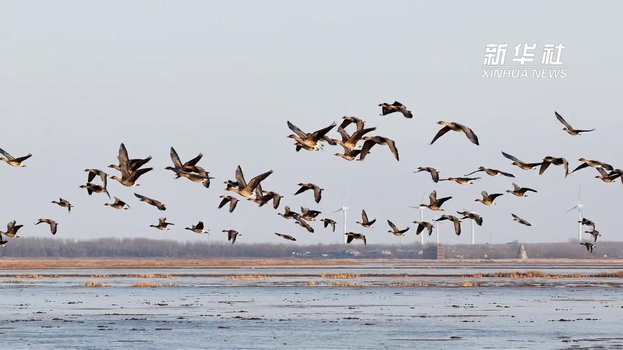 卧龙湖位于内蒙古科尔沁沙地南缘、辽河上游西岸。这里是北方重要生态屏障,也是候鸟迁徙的重要驿站。每到春秋两季,数百万只候鸟在此停歇栖息。目前,湖区鸟类已达279种。其中国家一级、二级保护鸟类共69种。万羽归栖间,北方湿地生态新貌徐徐铺展。