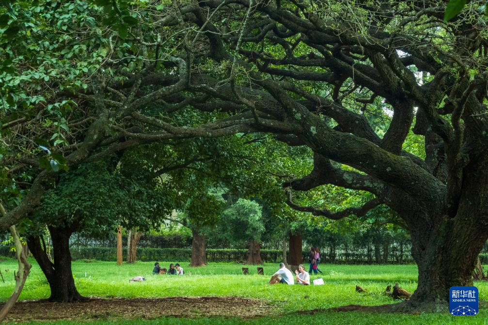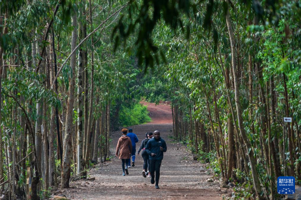 3月8日,游客在肯尼亚内罗毕植物园内的林间游玩。新华社记者 谢剑飞 摄
