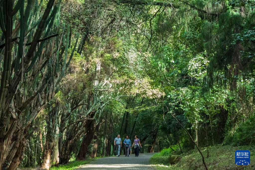 3月8日,游客在肯尼亚内罗毕植物园内的林间漫步。新华社记者 谢剑飞 摄