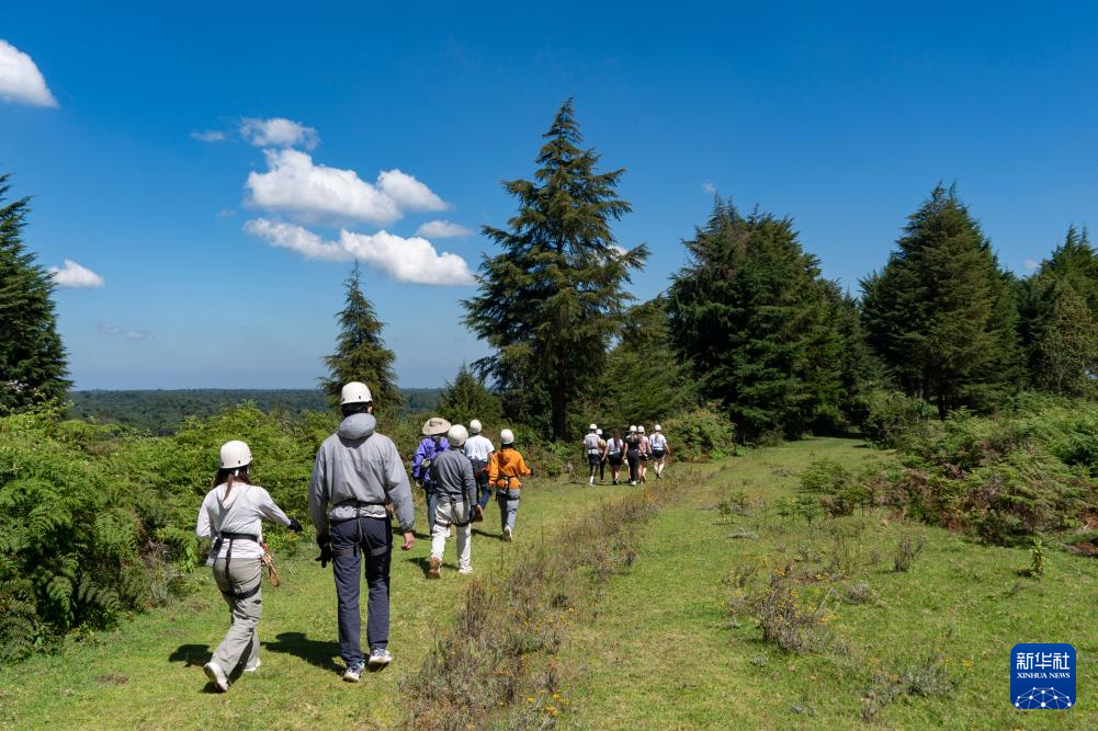 1月3日,游客在肯尼亚基安布郡的森林徒步。新华社记者 谢剑飞 摄