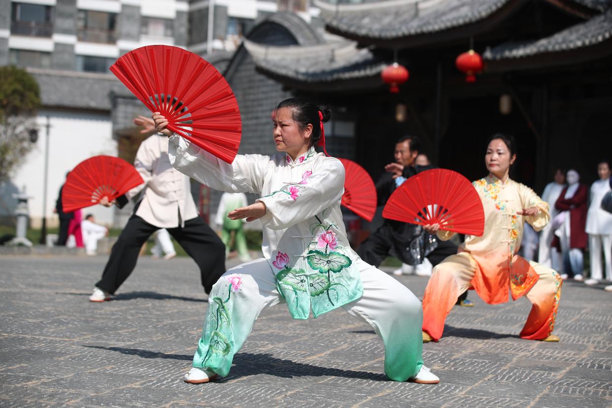 3月21日,在云南昭通古城文庙,太极拳爱好者进行太极拳展演。新华社发(张广玉 摄)