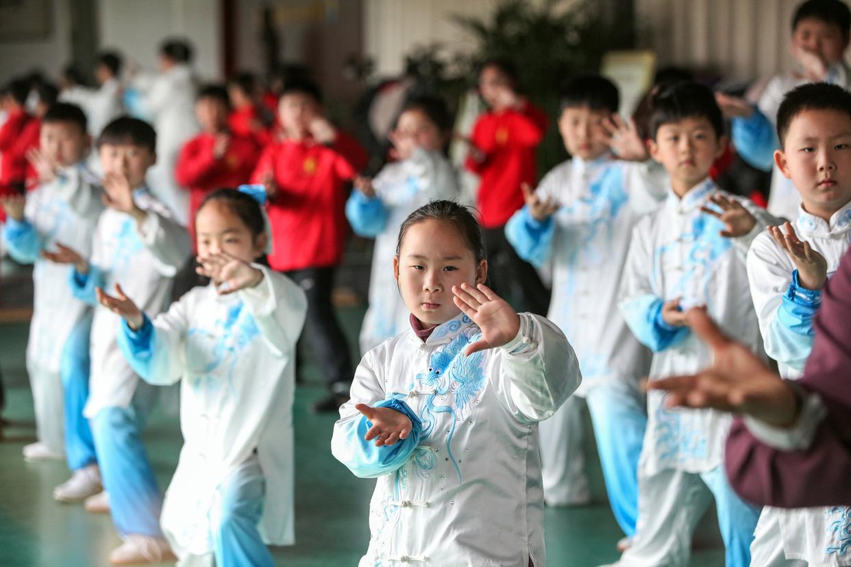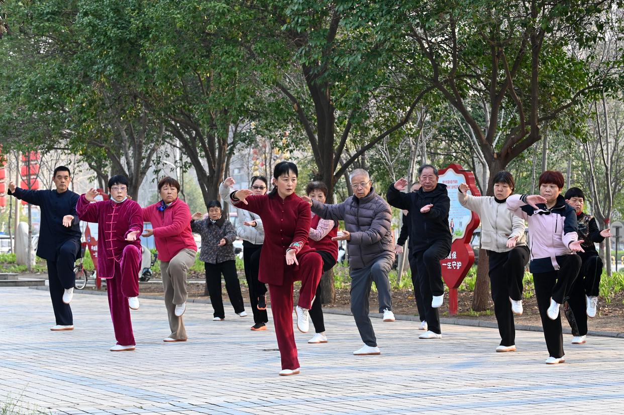 3月21日,在河南焦作博爱县,学员们在练习太极拳。新华社发( 程全 摄)