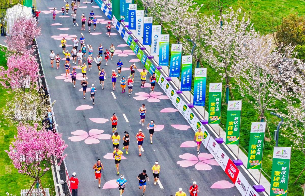 3月22日,来自世界各地的参赛选手冲过终点。(湖北日报全媒记者 柯皓 摄)