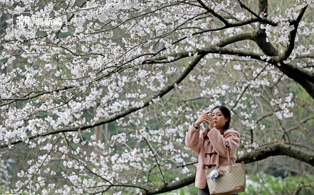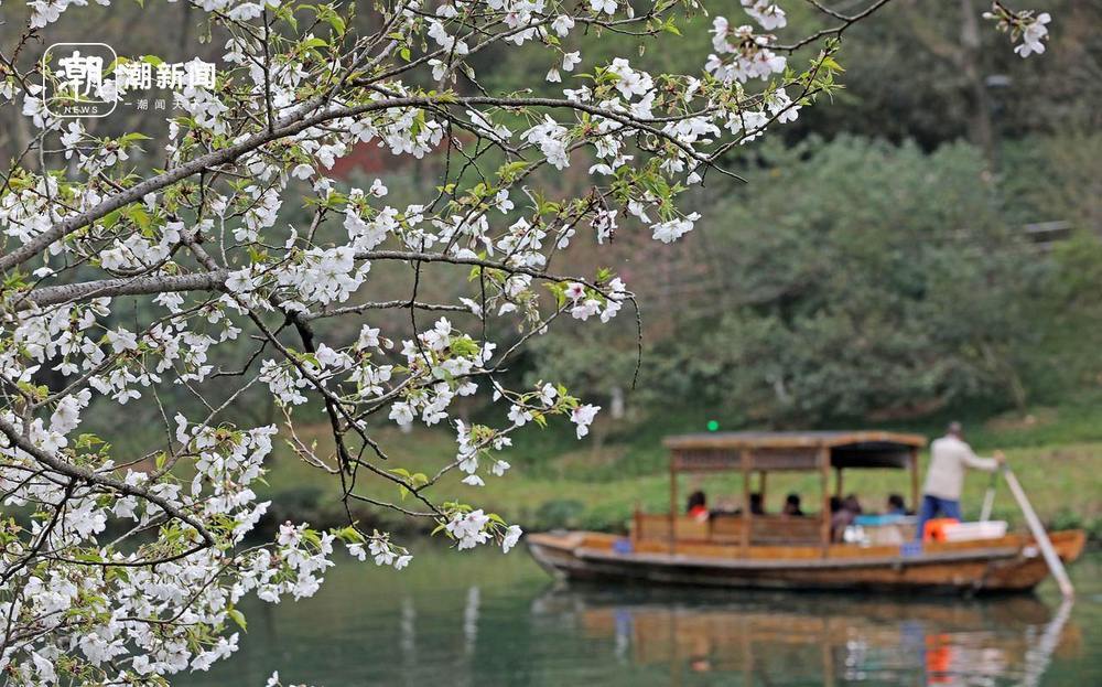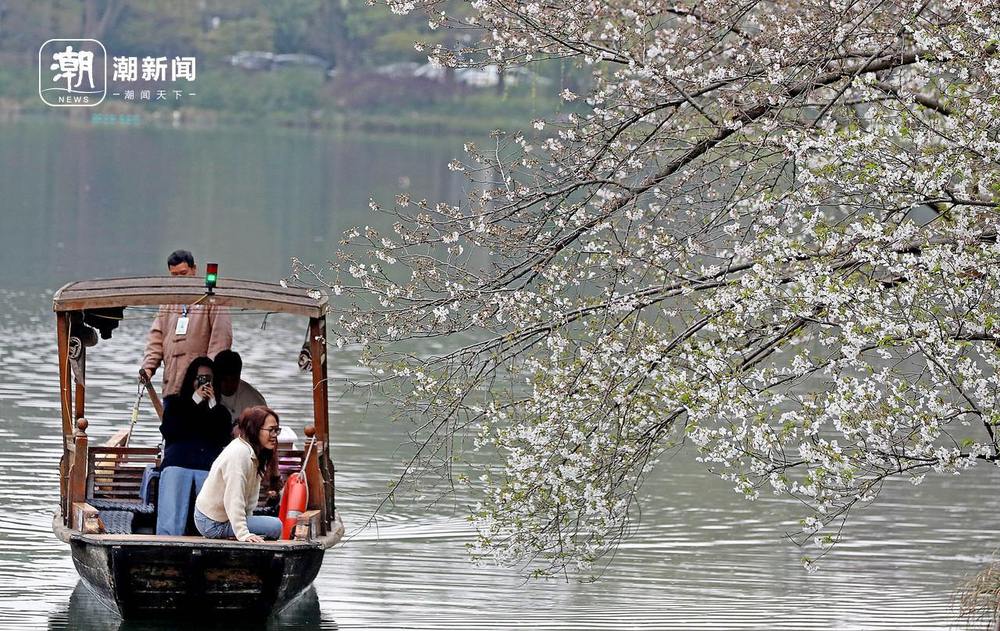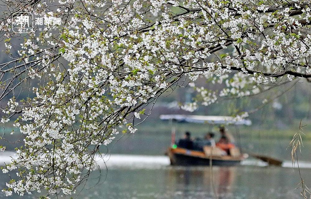 3月23日,杭州西湖乌龟潭景区的樱花烂漫绽放,满枝繁花临水而生,与澄澈碧水、悠悠游船相映成景,勾勒出一幅灵动秀美的春日画卷。游人或泛舟赏樱,或花间留影,在湖光山色间赴一场浪漫的春日之约。