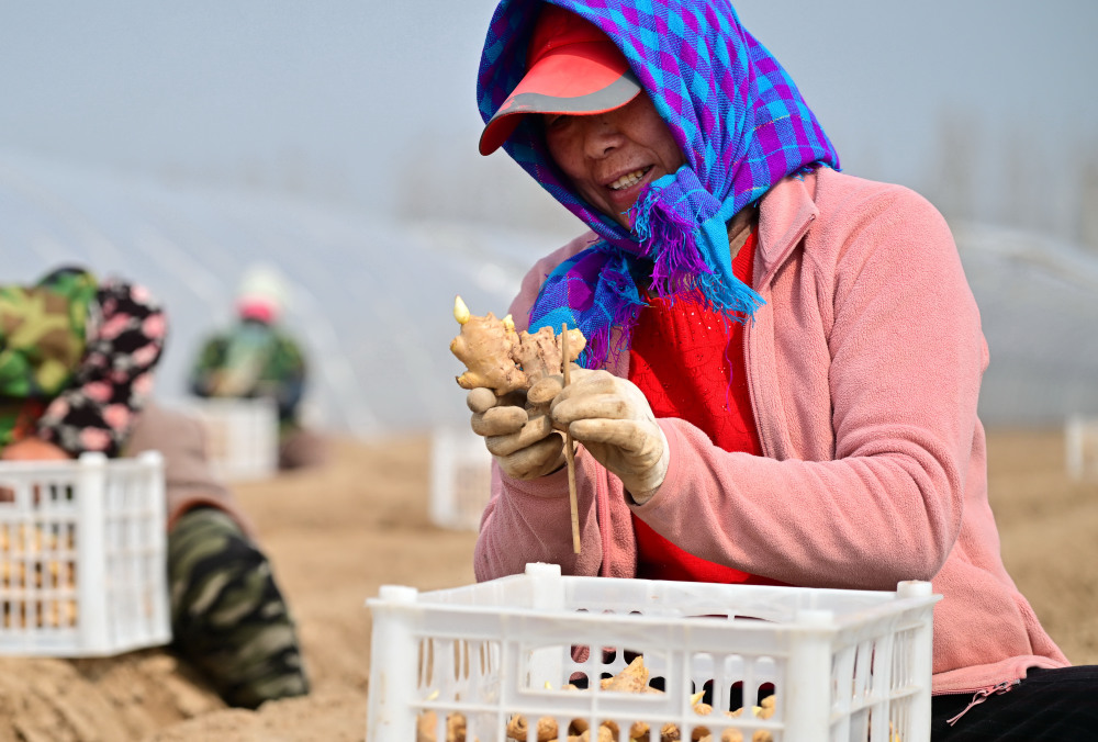 3月26日,河北省唐山市丰南区大新庄镇的农民在播种生姜。新华社记者 杨世尧 摄