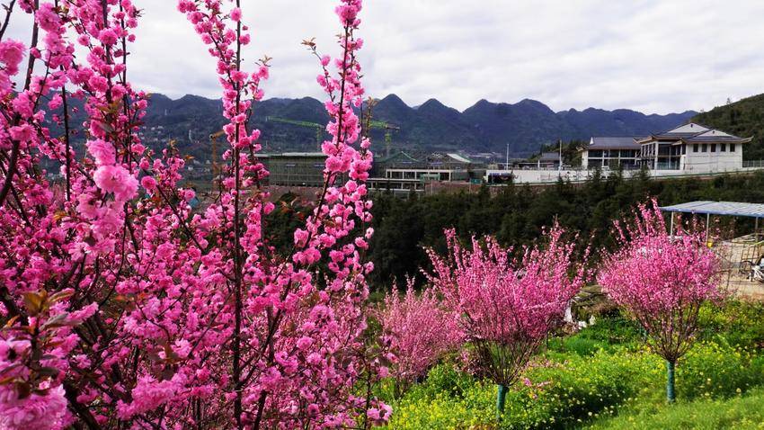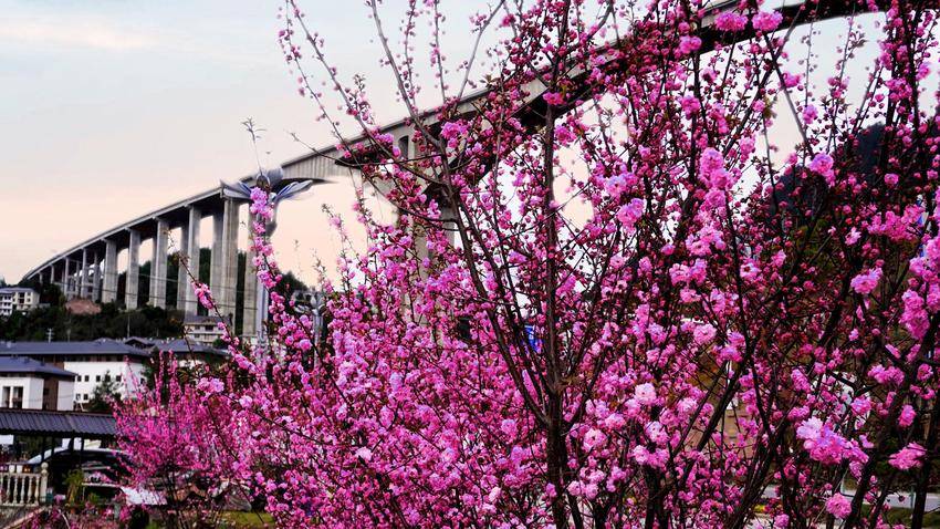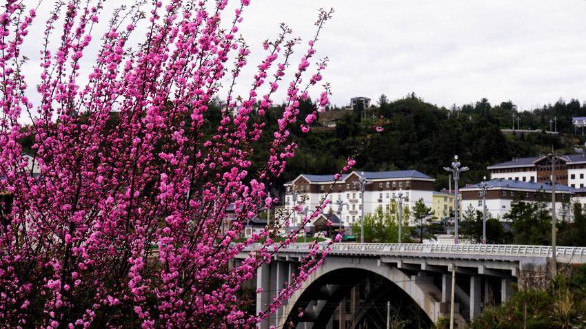 谁能想到,昔日这片杂草丛生、满目荒芜的后村,如今竟成了鹤峰县城通往屏山大道与高速公路的亮眼风景。新栽的榆叶梅错落排列,与高速天路、大桥、游客中心相映成趣,既填补了高峡的寂寥,又为通途添了几分诗意。