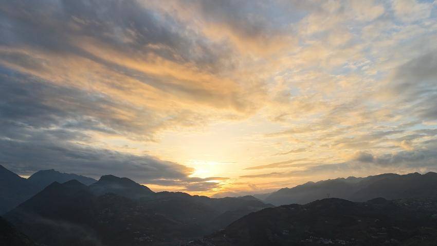 3月26日,雨后初霁,巴东长江上空上演绝美晚霞。夕阳穿透云层,将天空染成油画。云团似火烧,红霞漫天涌动。