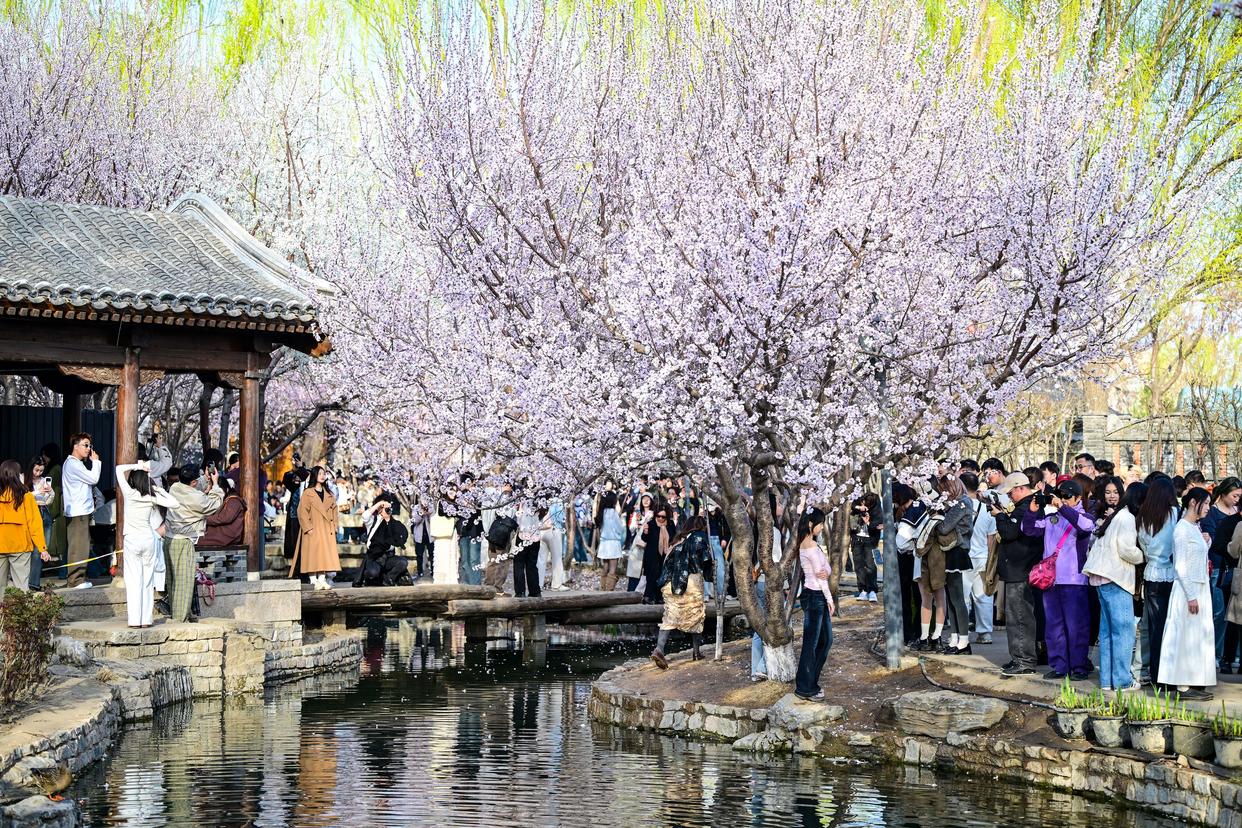3月19日,游人在北京玉渊潭公园赏春。新华社记者 罗晓光 摄