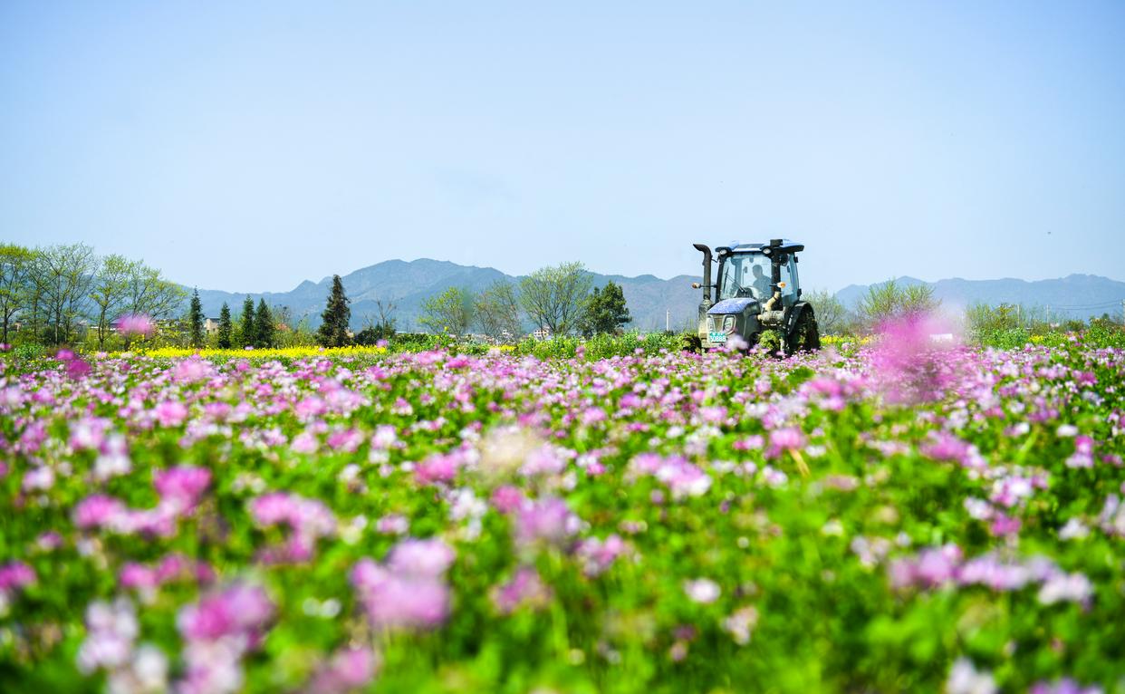 3月13日,在湖南省常宁市洋泉镇,农民驾驶农机翻耕农田。新华社发(周秀鱼春摄)
