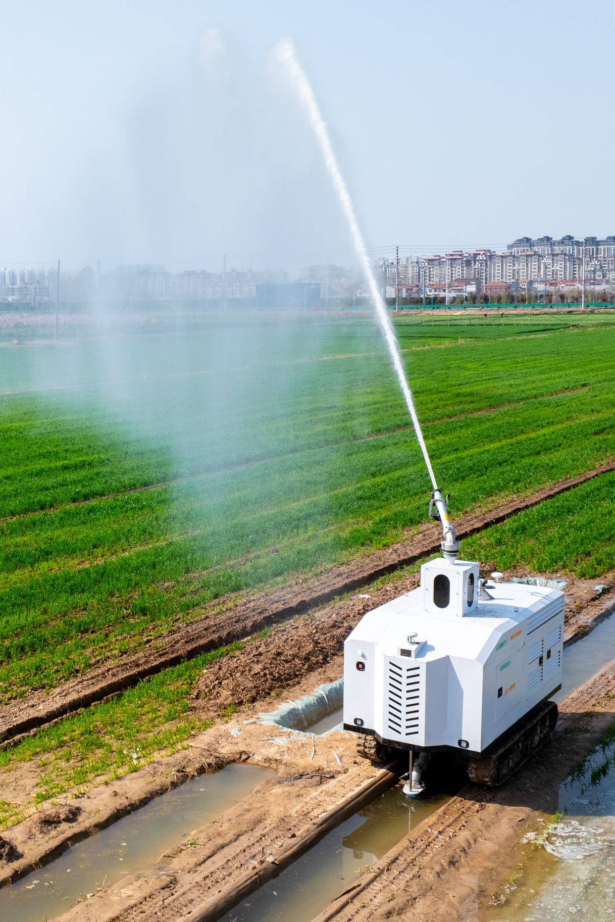 3月27日,智能灌溉机器人在河南省商丘市睢县城关镇袁庄村一处麦田内进行水肥一体化喷灌作业。新华社发(徐泽源 摄)