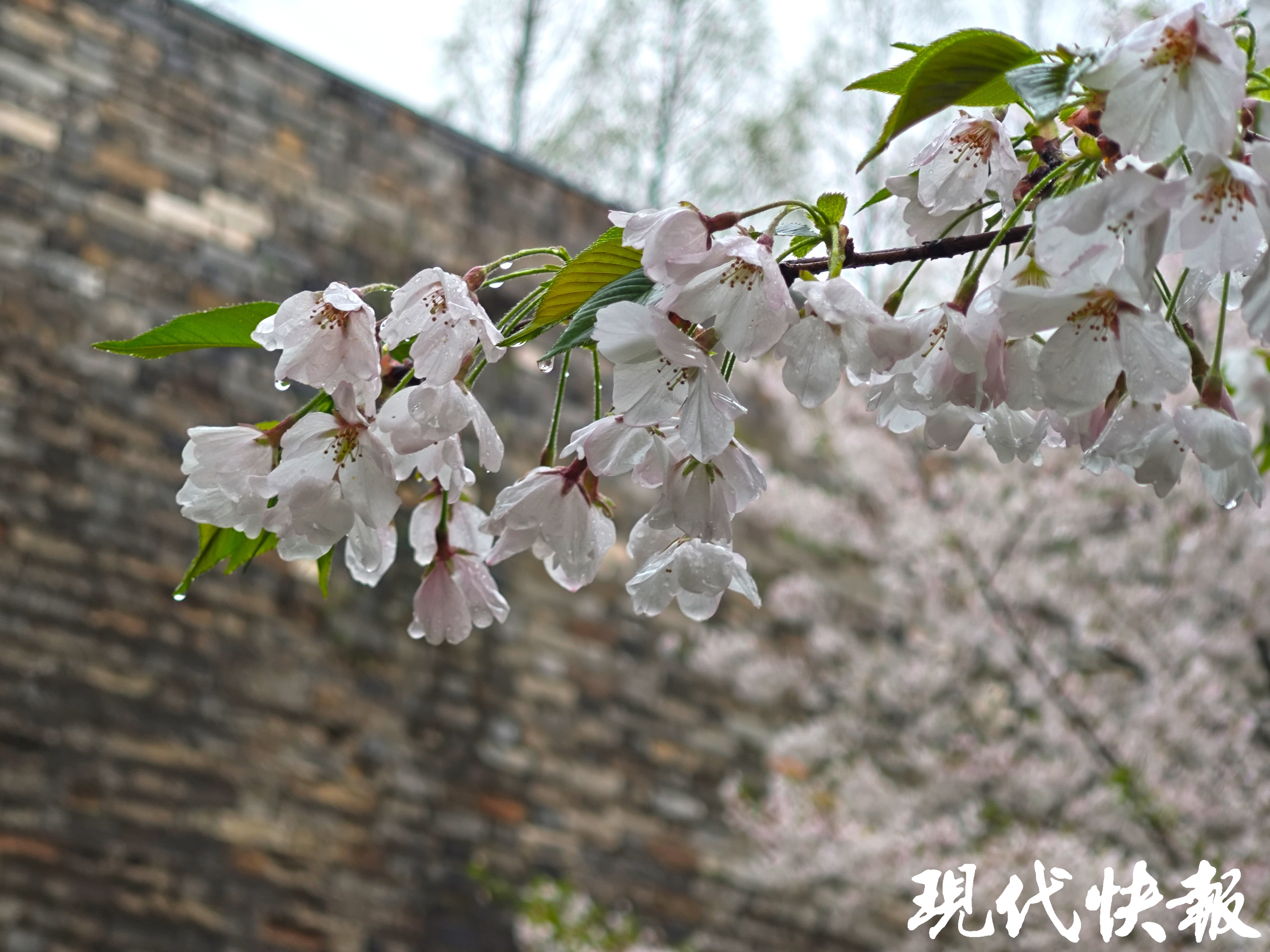 现代快报讯(记者卢河燕/文赵杰/摄)“夜来风雨声,花落知多少。”3月30日,春雨携大风来袭,南京明城墙边樱花簌簌落。