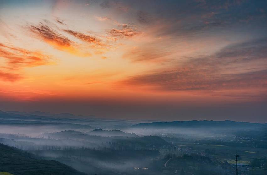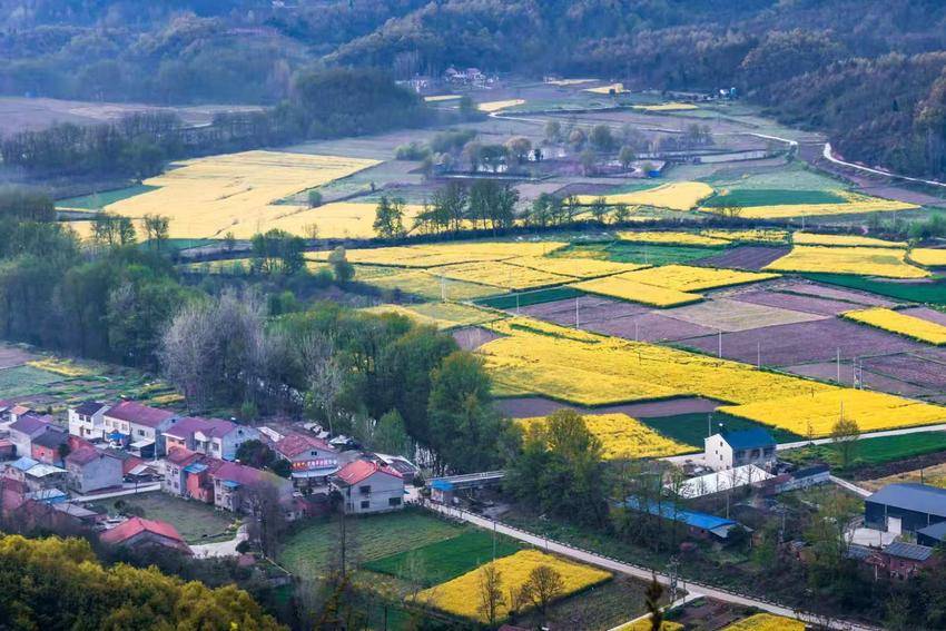 当这层朦胧遇上田垄间铺陈开的金黄,天地瞬间就成了一幅流动的水墨,雾是晕开的墨色,油菜花是点睛的朱砂,远处的青山在雾里时隐时现,像极了古人画轴里不肯全露的意趣。