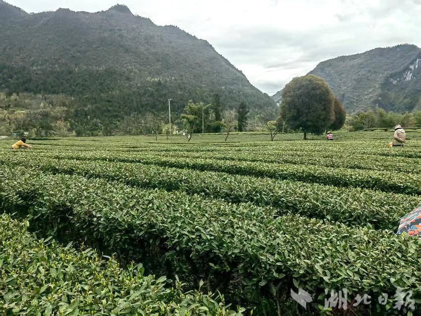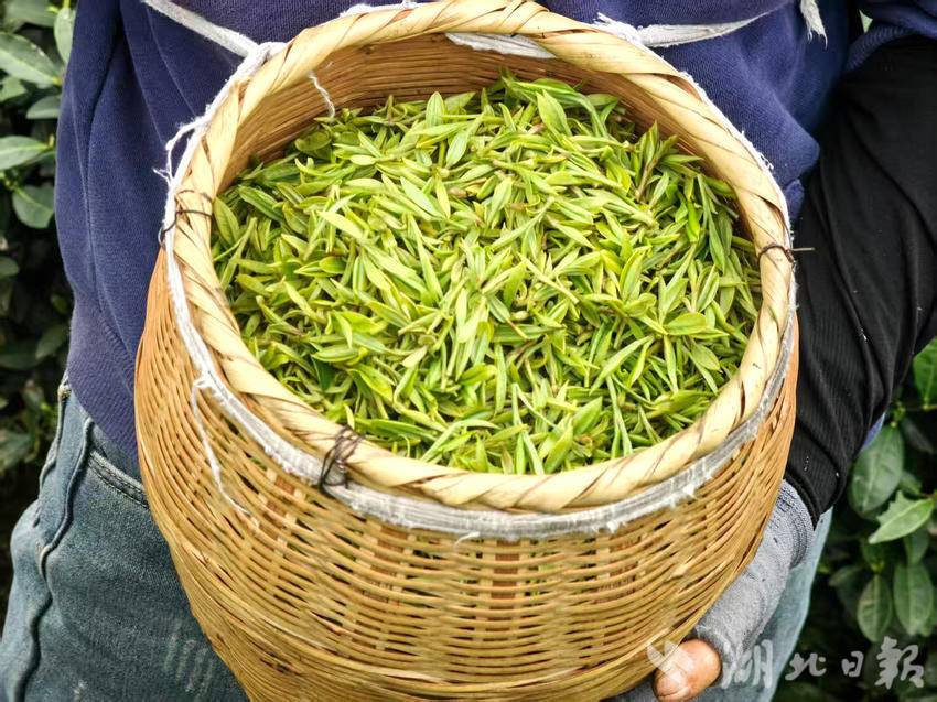 湖北日报客户端讯(通讯员胡自丹 唐和)3月31日,恩施市白杨坪镇麂子渡村茶园进入明前茶采摘黄金期。漫山叠翠的茶垄间,茶农们头戴草帽、指尖翻飞,抢摘嫩绿茶芽。一片片鲜叶落入竹篮,勾勒出春日农忙画卷。
