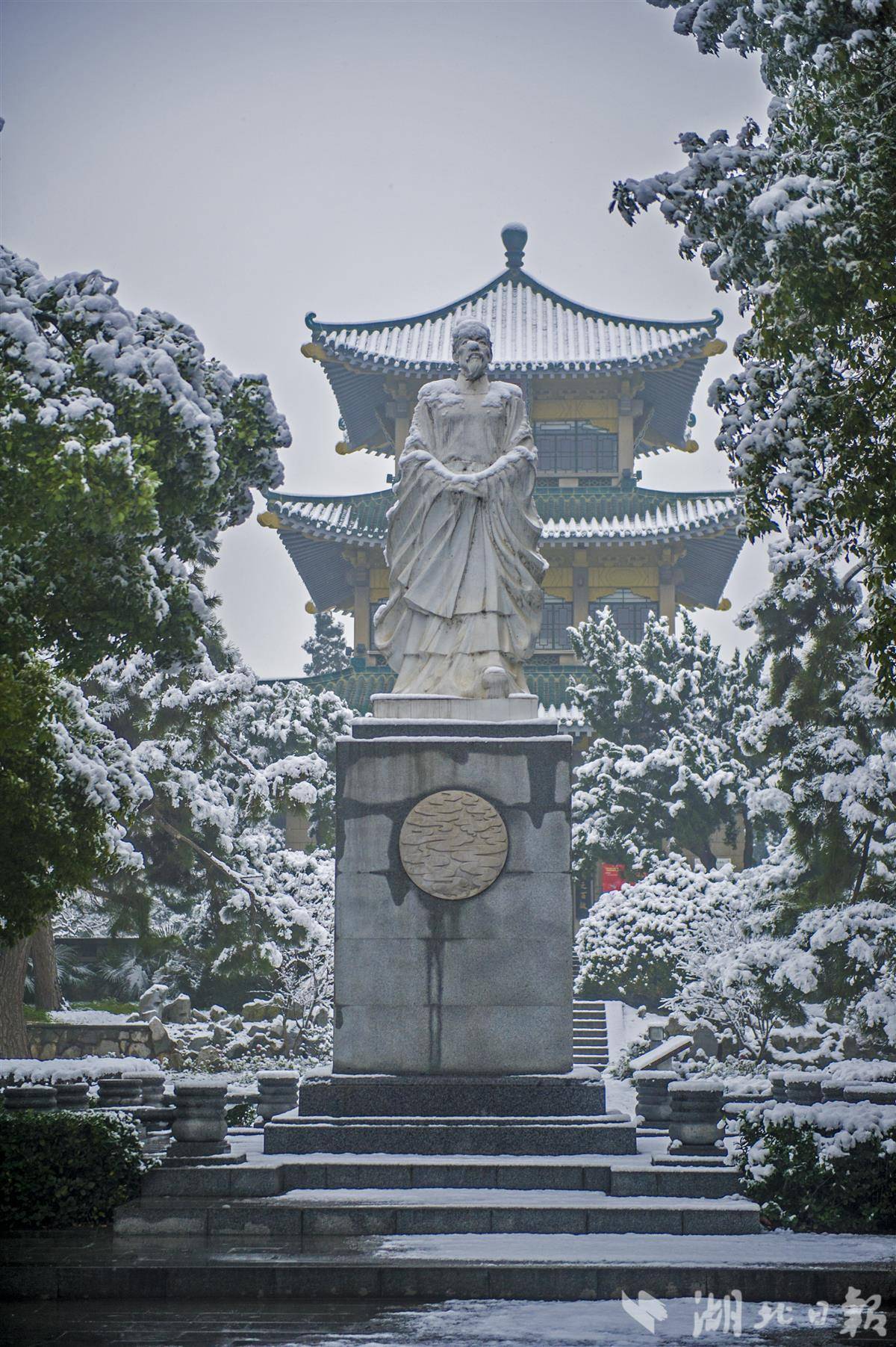 4月3日,记者通过 AI 技术,将武汉东湖听涛阁前屈原像的四季新闻照片串联成延时视频:春柳拂檐、夏木葱茏、秋染金叶、冬雪覆台,环境随四季更迭,而屈原雕像巍然不动。四季流转,草木荣枯,东湖的晨昏与风雪换了又换,唯有这尊雕像,始终面朝大江,静立如初。它是时光的锚,将东湖的春生、夏长、秋收、冬藏,一一锚定在镜头里;它是岁月的证,让每一次按下快门,都成了对这片山水、对这位先贤最深情的回望。(湖北日报全媒记者 刘曙松 拍摄|制作)