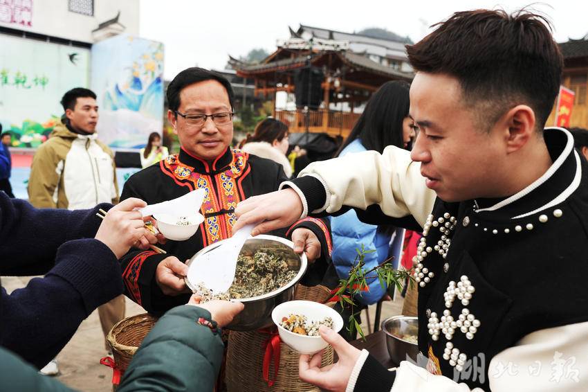 春社是传承千年的民俗盛典,承载着劳动人民对风调雨顺、五谷丰登的美好期盼。“作为省级非物质文化遗产代表性项目,社节在咸丰得以原生态地自然传承。做社饭、做社蒿粑,请邻里亲友聚会品食、相互馈赠,这是土家族人最淳朴的民风。”咸丰县民族文化研究会会长李春国介绍。