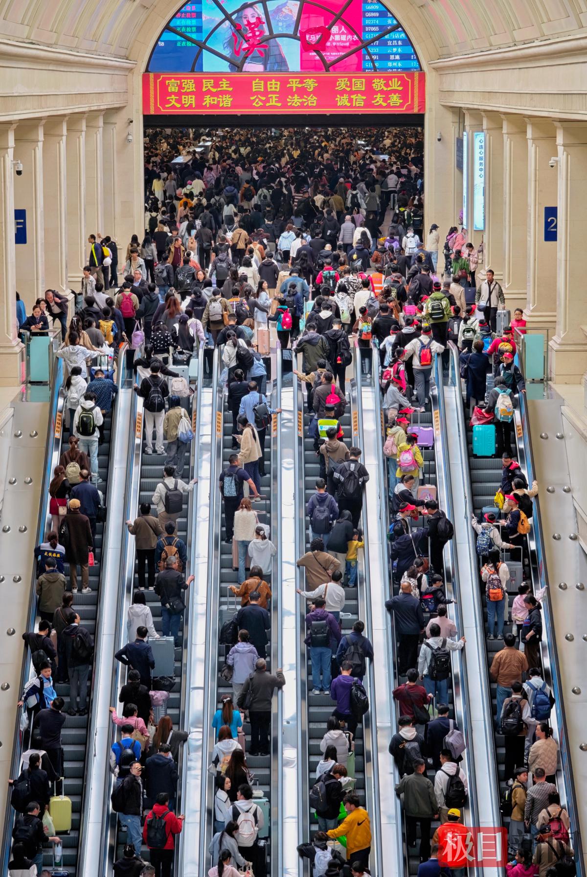 根据清明假期运输特点,汉口站提前谋划部署,强化安全保障,优化服务举措,全力应对清明假期探亲、祭扫、踏青等交织的客流高峰,确保旅客出行安全畅通、温馨有序。假期运输期间,汉口站预计累计发送旅客73万人次,同比增长4.5%,其中4月4日清明节当日迎来客流最高峰,预计发送旅客20.5万人次。假期期间,该站累计增开列车401趟,旅客发送量和运输保障能力均实现稳步提升。