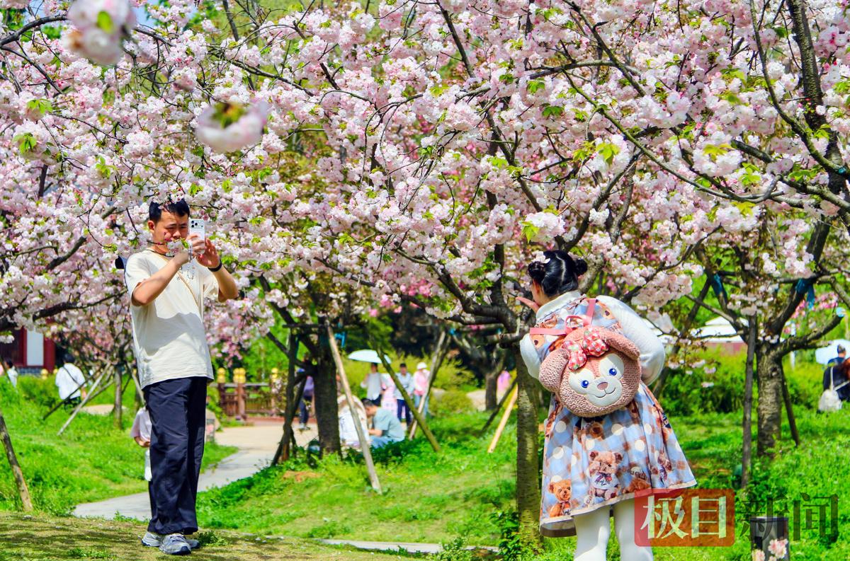 早樱谢幕,中樱含春,晚樱登场。随着武汉赏樱季进入后半程,东湖樱园一株株粉红的晚樱正在接力绽放。4月4日,清明时节,气候宜人,正是外出踏青赏花的好时节,清明假期的东湖景区再次迎来一波赏花高峰。