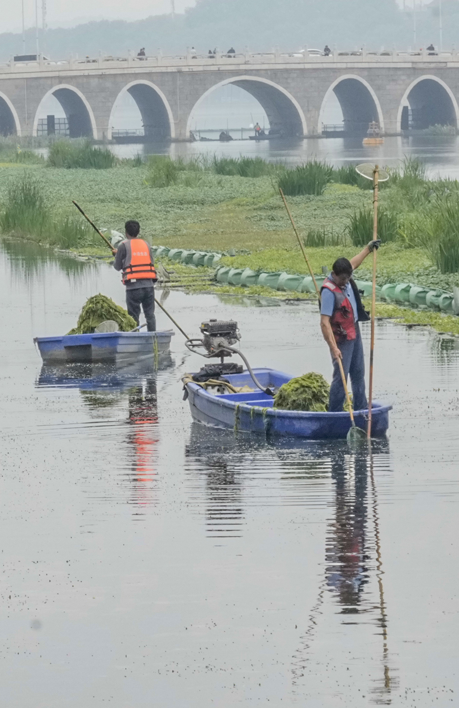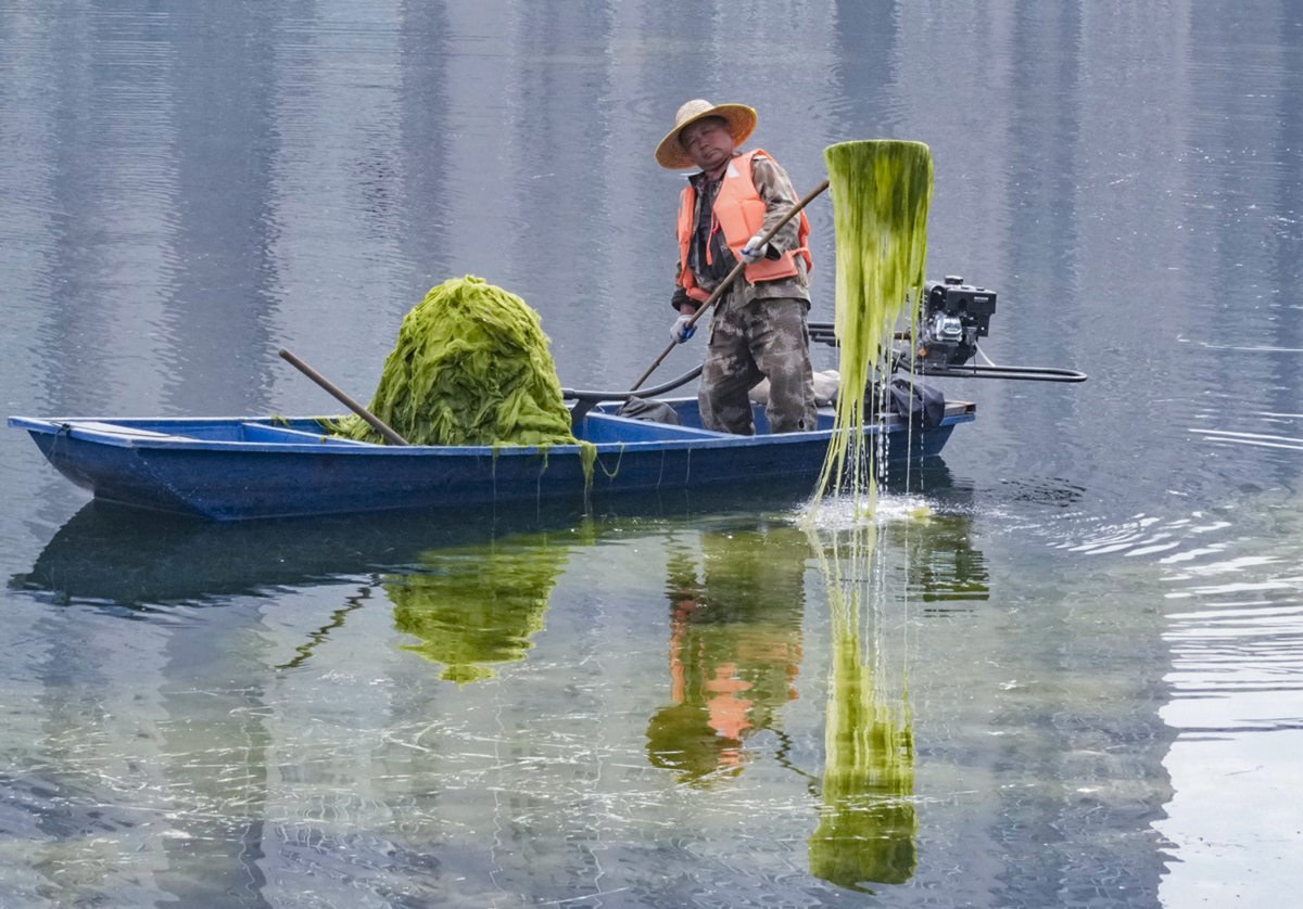 据悉,绿藻的大量繁殖会使水体富营养化,造成水体透明度降低,引发厌氧微生物繁殖,造成水面污浊,散发腥臭味,严重影响黄塘湖水环境和游客的观赏。据现场负责人介绍,随着气温的快速上升,绿藻繁殖加快,他们通过增加清捞人手和每日清捞频次,努力打造和保护水清岸绿景美的水域环境。