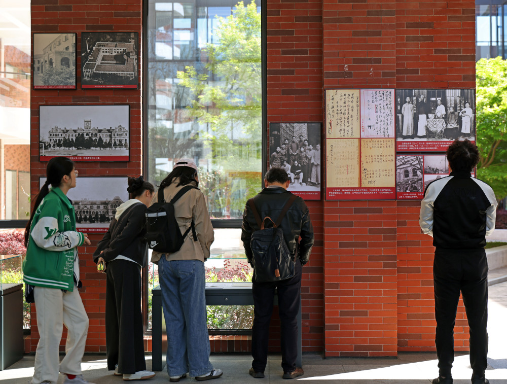 4月7日,在上海交大闵行校区东中院,人们在参观《国之所需 吾之所向——钱学森与上海交通大学》专题展。新华社记者 刘颖 摄
