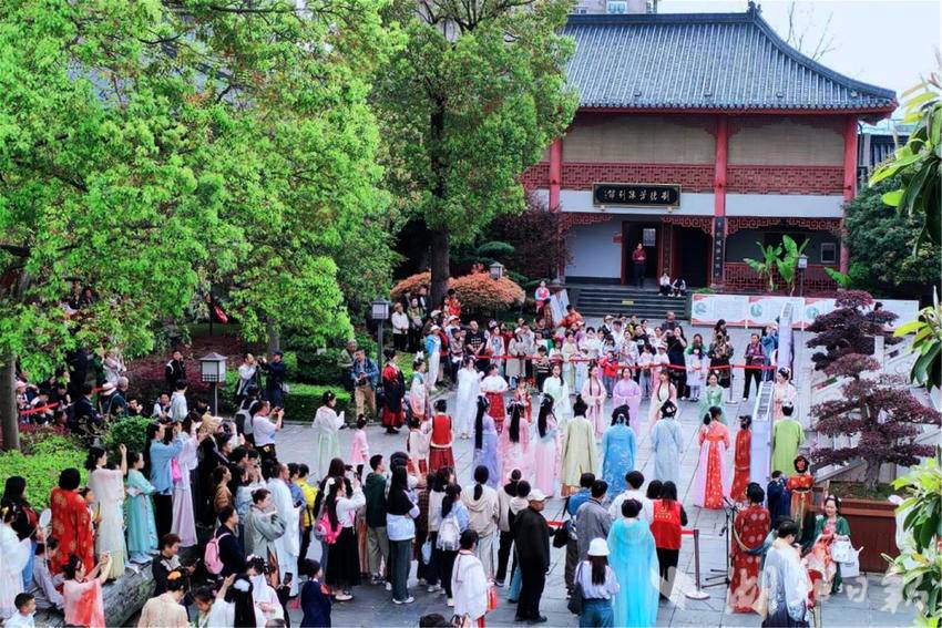 湖北日报客户端讯(通讯员余国斌、余超)2026年4月6日,宜昌市汉服文化协会联合夷陵区博物馆在夷陵楼举办宜昌第三届花朝文化节。