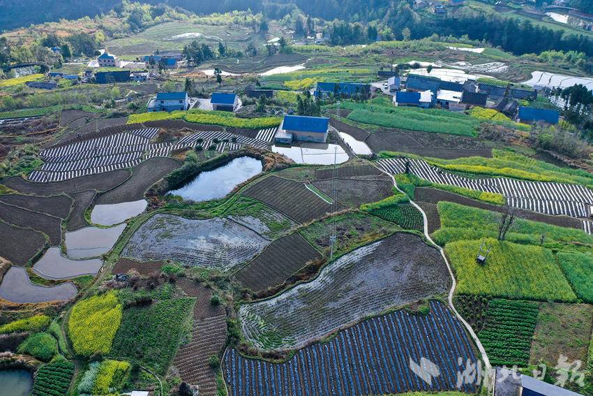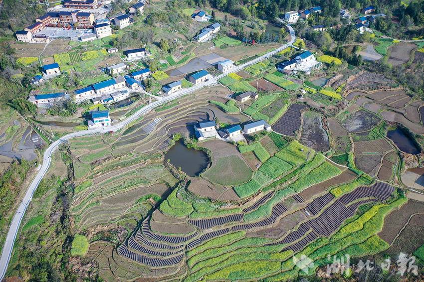湖北日报客户端讯(通讯员陈功龙)春风掠过长江北岸层峦,为巴东县东瀼口镇牛洞坪村晕染出流动的田园诗画。3000余亩梯田依山层叠,72口堰塘星罗棋布;金黄油菜花与嫩绿秧苗交织,白墙黛瓦的土家民居错落点缀,春日盛景鲜活动人。