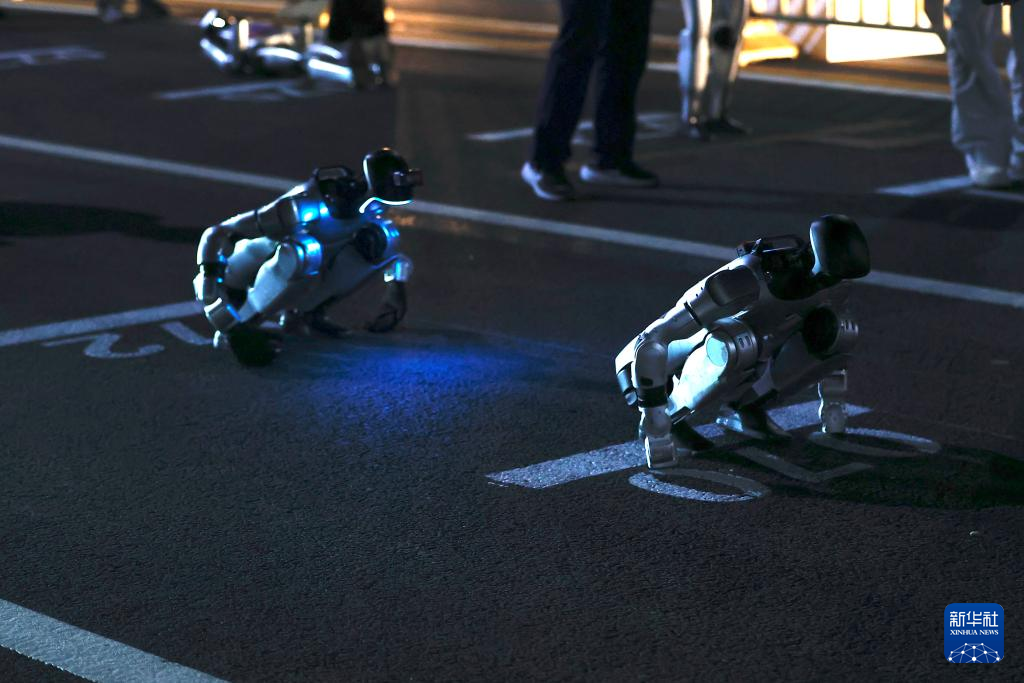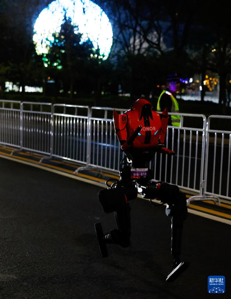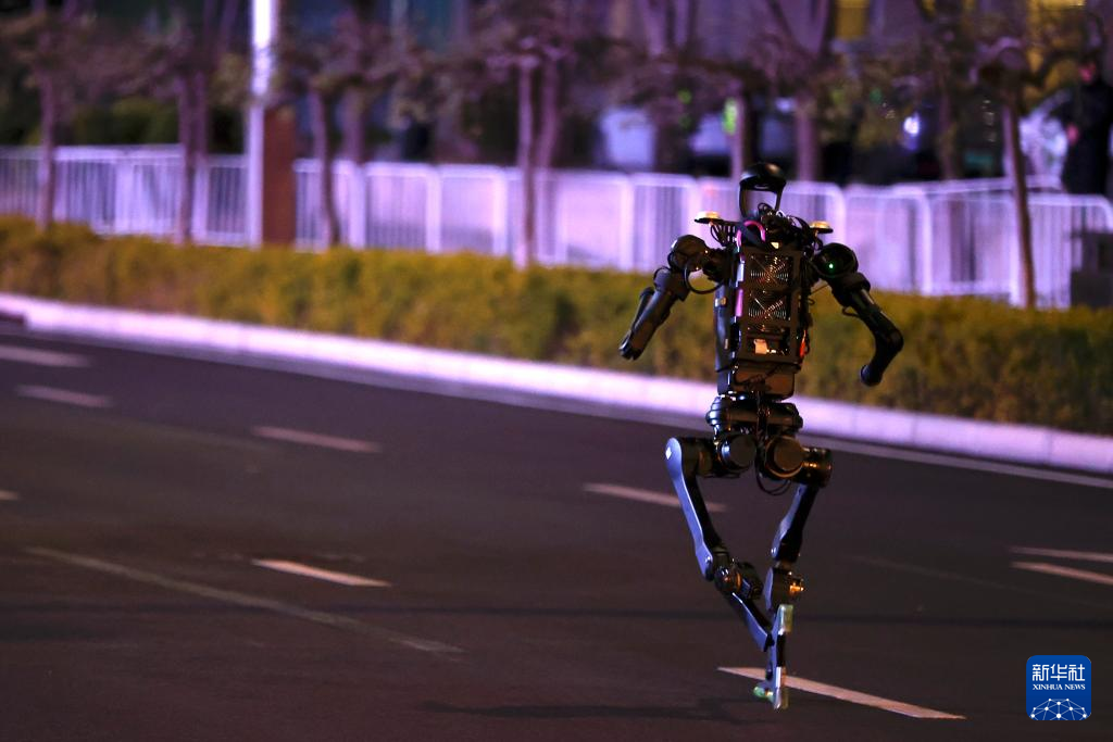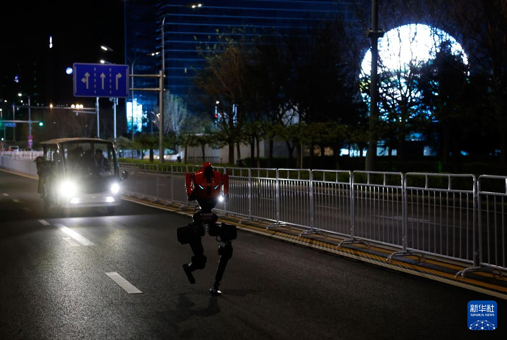 4月11日晚,一台机器人在测试活动中奔跑。