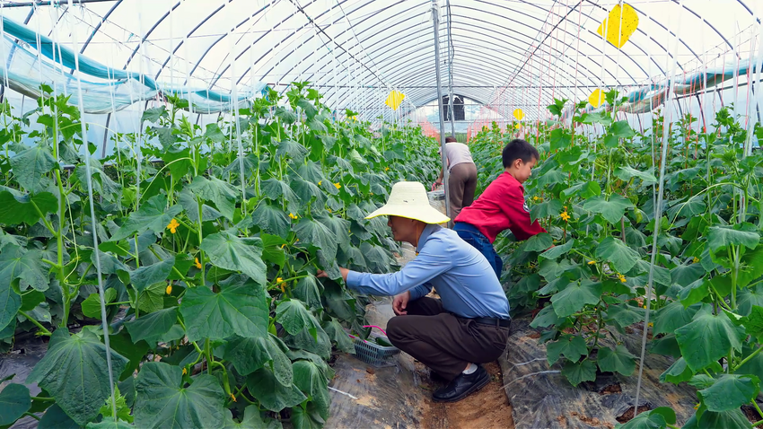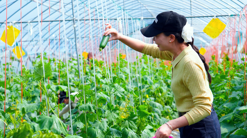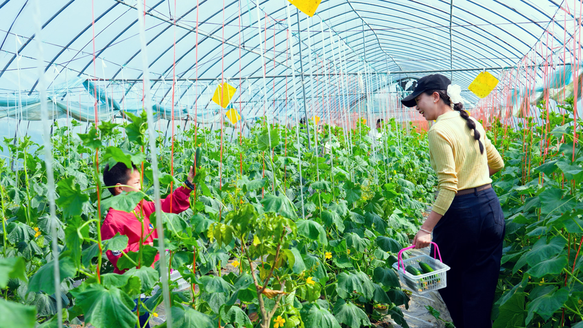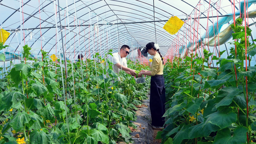 武汉游客鲍贤璇专程携家人前来,他表示:“带着老婆孩子来这里度假、采摘,既能亲近自然,又能品尝到新鲜果蔬,这一趟来得十分值得。”