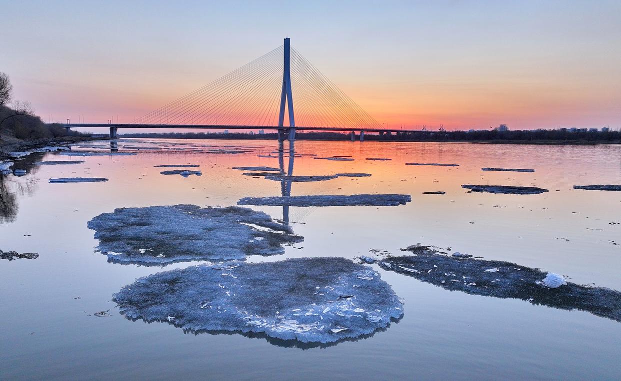 这是4月9日傍晚拍摄的松花江干流哈尔滨段流冰景观(无人机照片)。新华社发(张树摄)